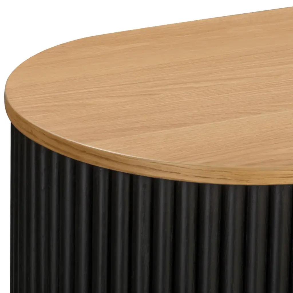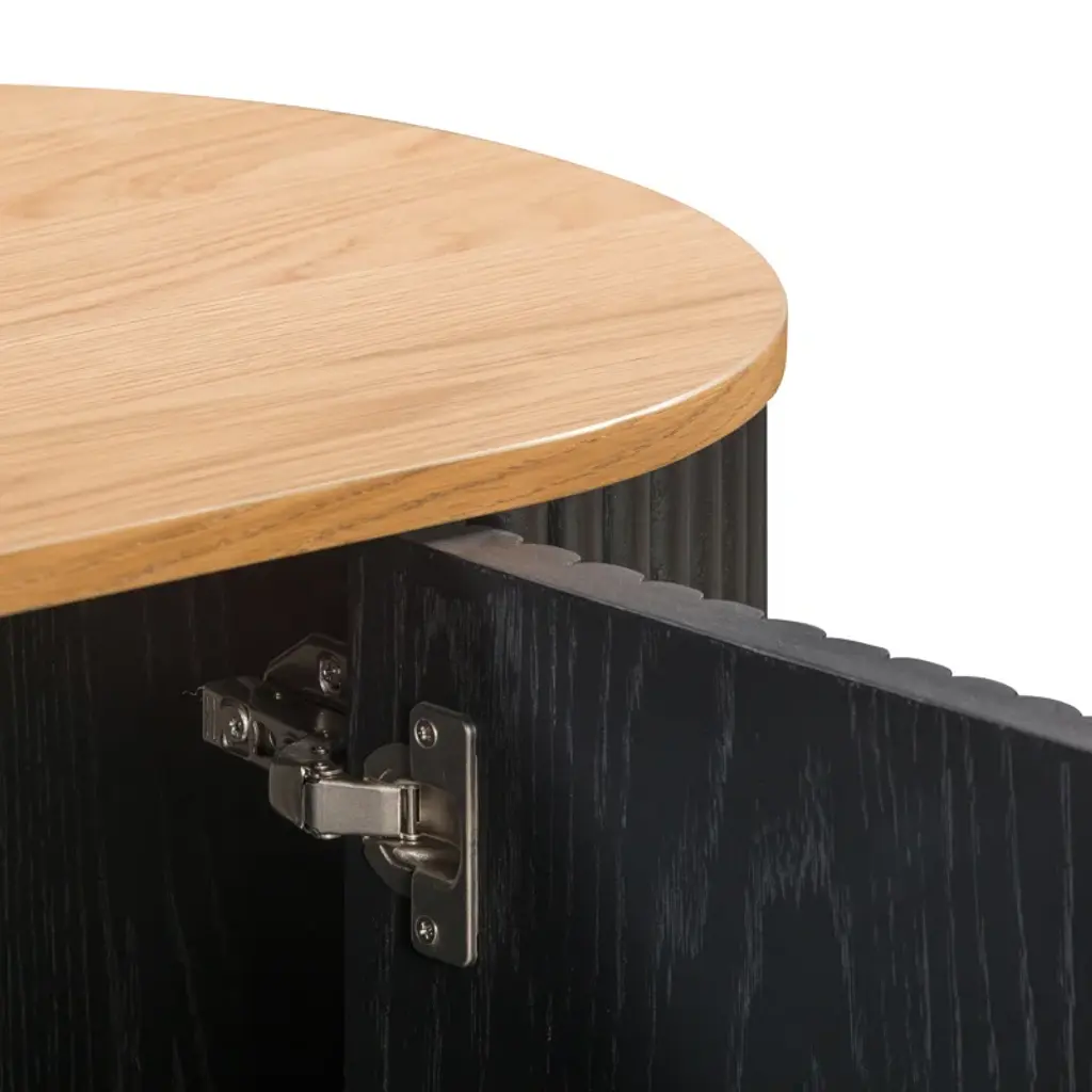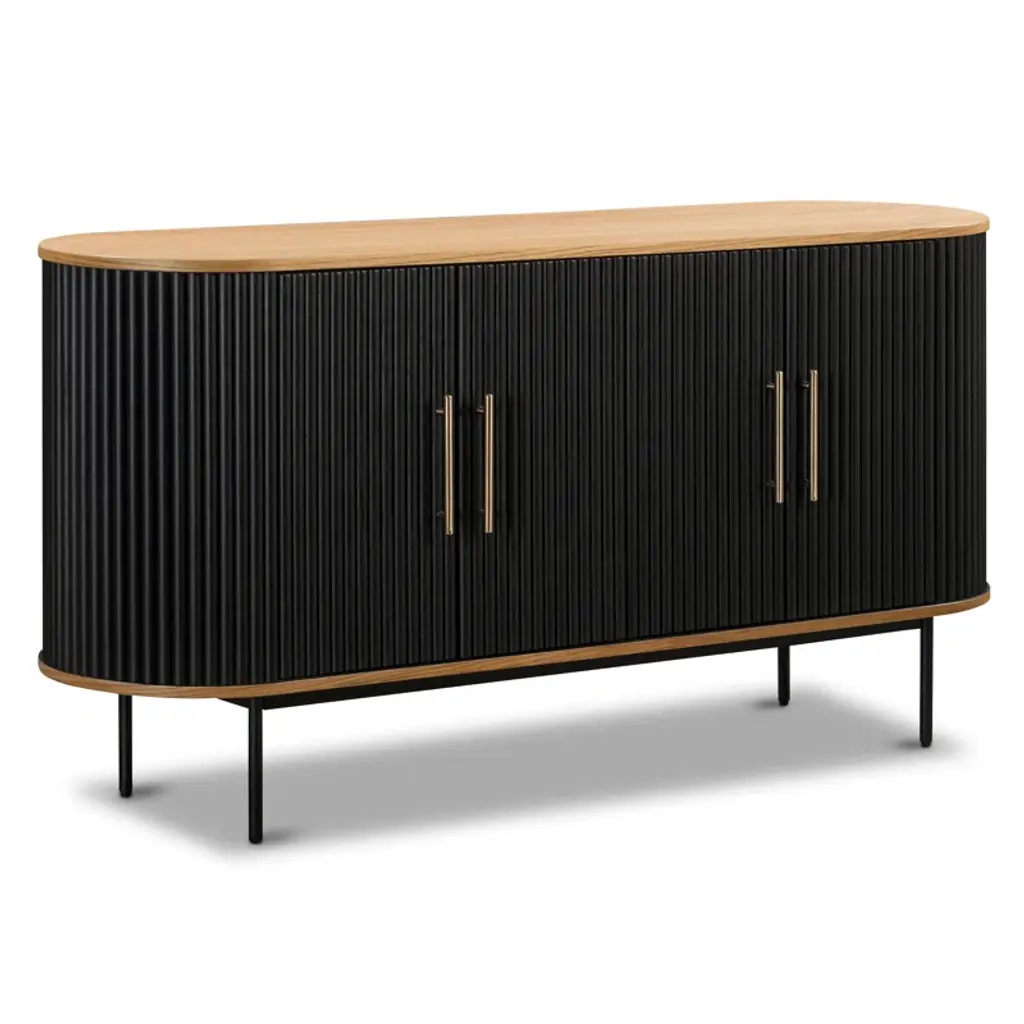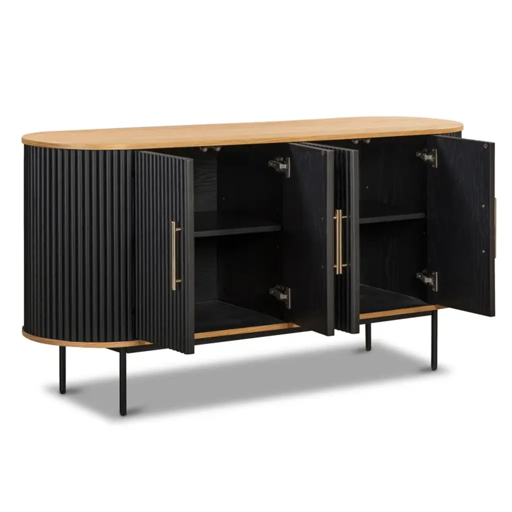 Ribbed and ravishing, our sideboard is the dark and dreamy addition your abode has been seeking. Add depth and dimension to your space thanks to its ribbed façade, and natural solid American oak wood top. With ample storage and adjustable shelving for your entertaining or media needs, this sideboard also boasts cable cutouts at the back to ensure cables stay tidy.