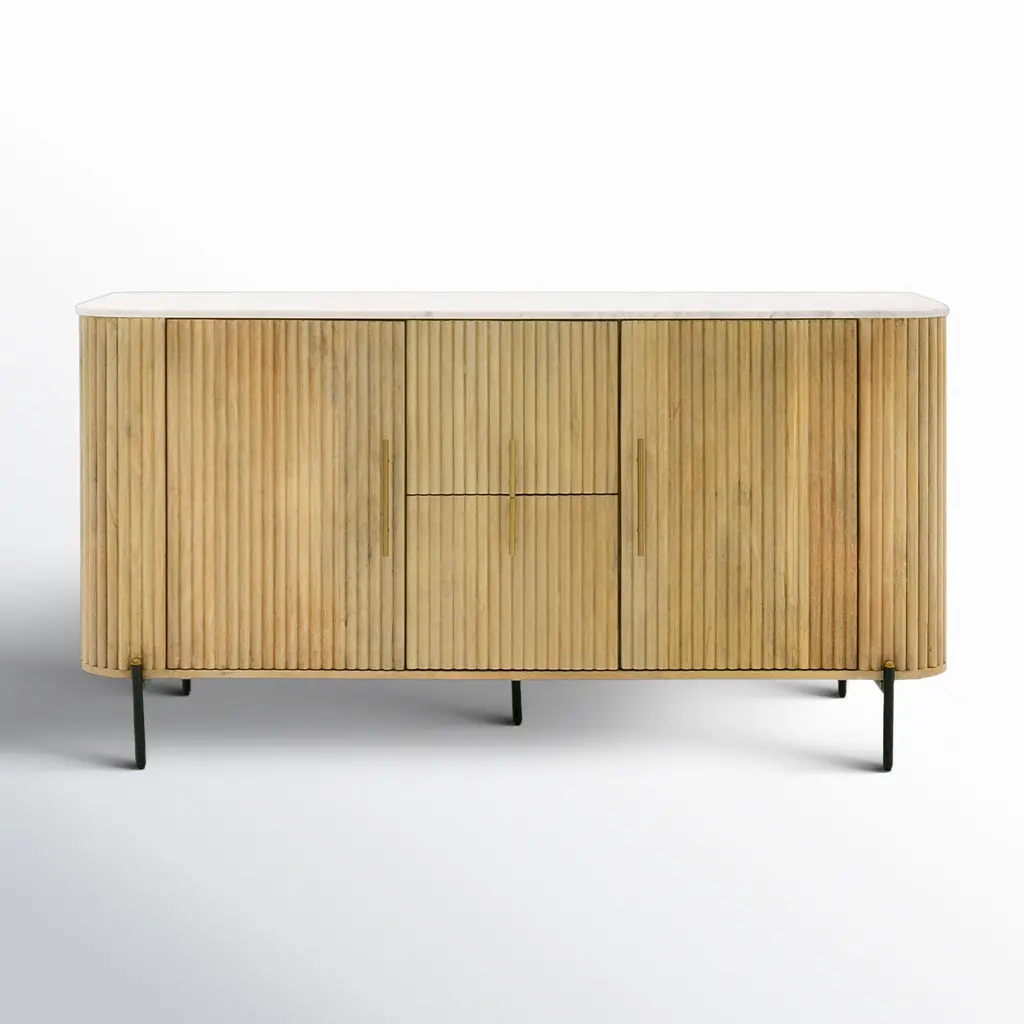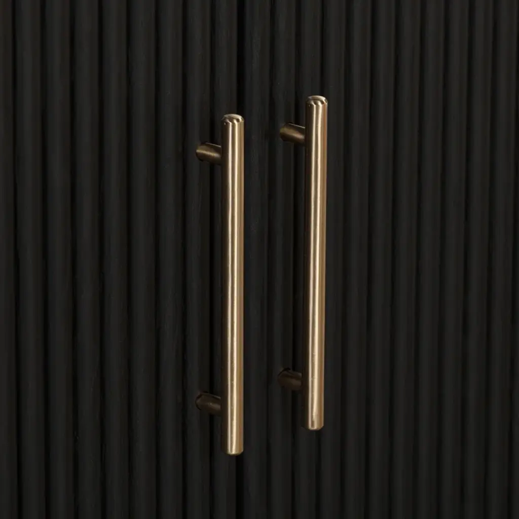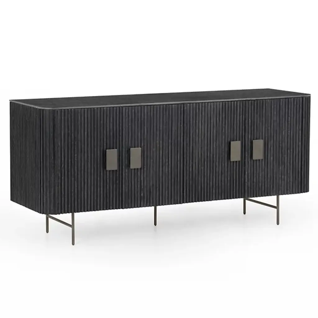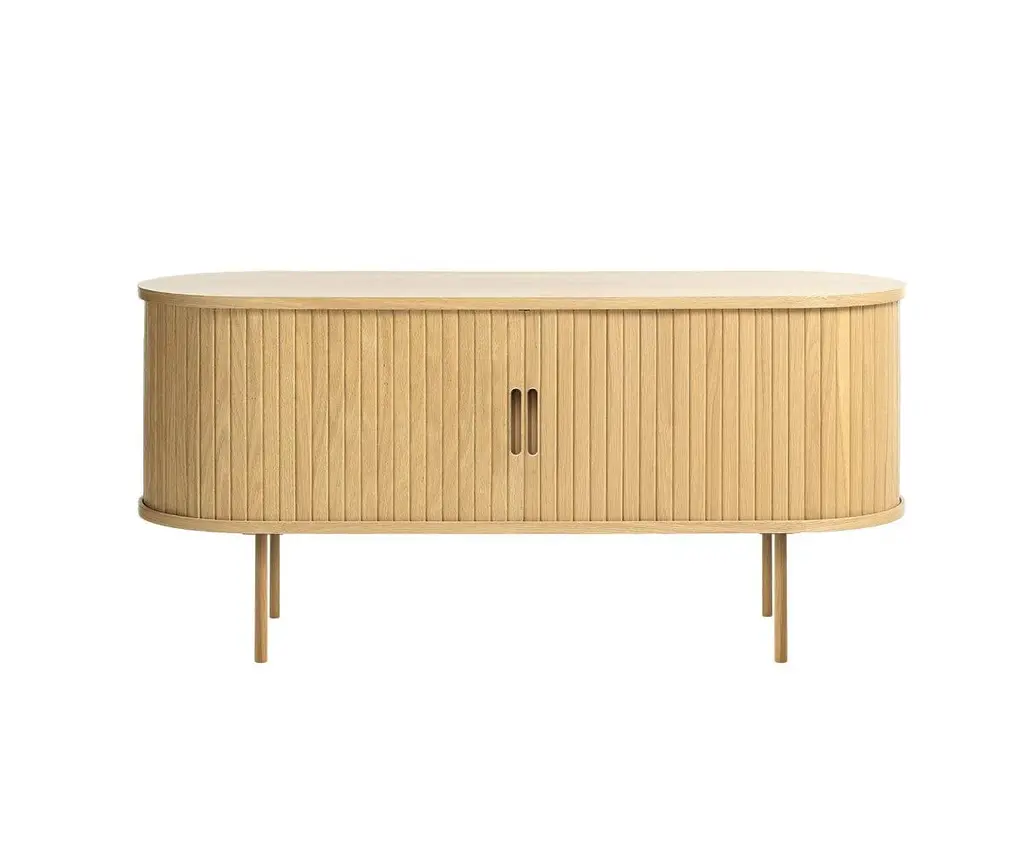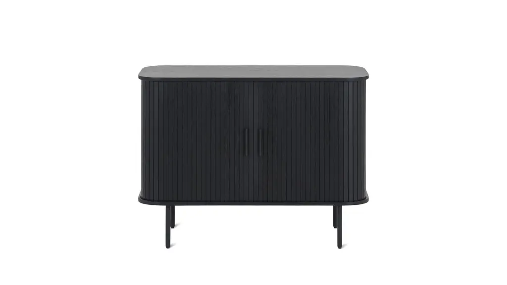 Ribbed and ravishing, our sideboard is the dark and dreamy addition your abode has been seeking. Add depth and dimension to your space thanks to its ribbed façade, and natural solid American oak wood top. With ample storage and adjustable shelving for your entertaining or media needs, this sideboard also boasts cable cutouts at the back to ensure cables stay tidy.
