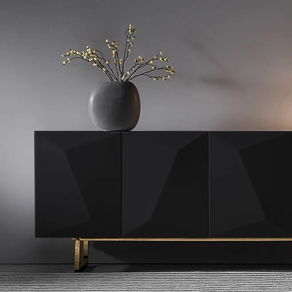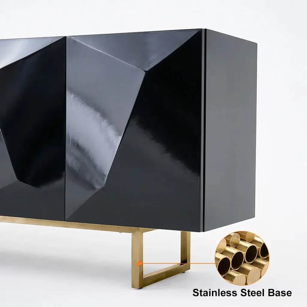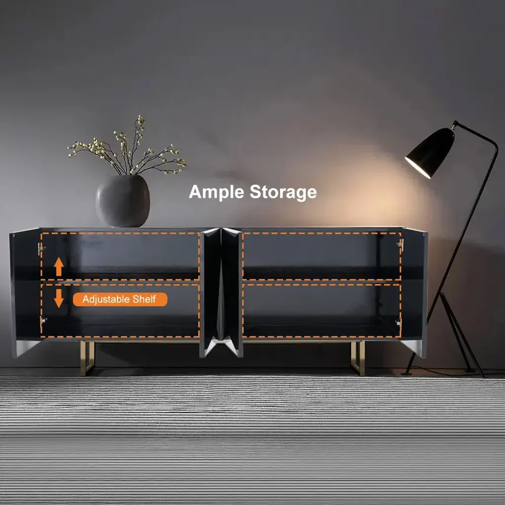 71" Modern Black Buffet Sideboard With Gold Base & Adjustable Shelves
