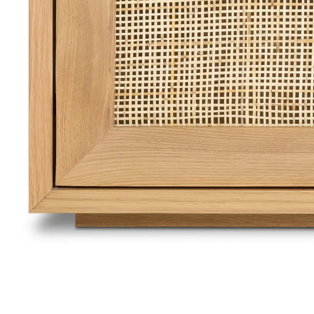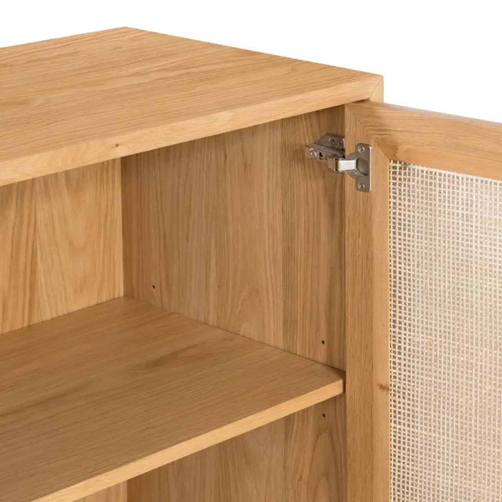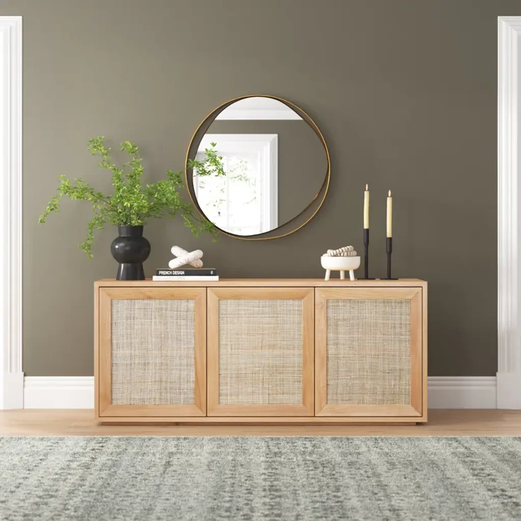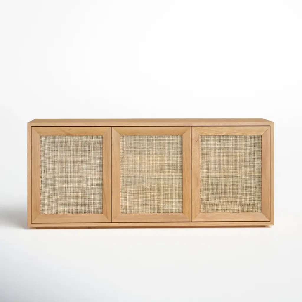 Stylishly store your cherished serving pieces (and anything else you’d like tastefully tucked away) in our state sideboard. Boasting three natural cane doors, this sideboard has a place for everything within its spacious interior. The interior shelves are height-adjustable, ensuring you can fit what you need— from vases to plates. Plus, the sideboard top offers plentiful space for your dry bar setup and accessories— entertaining never looked so good.