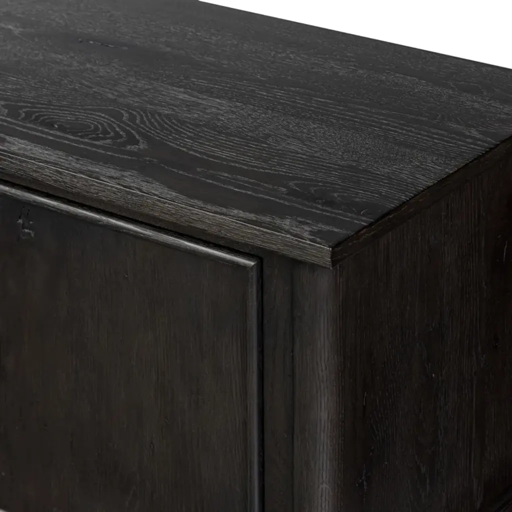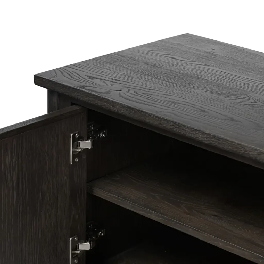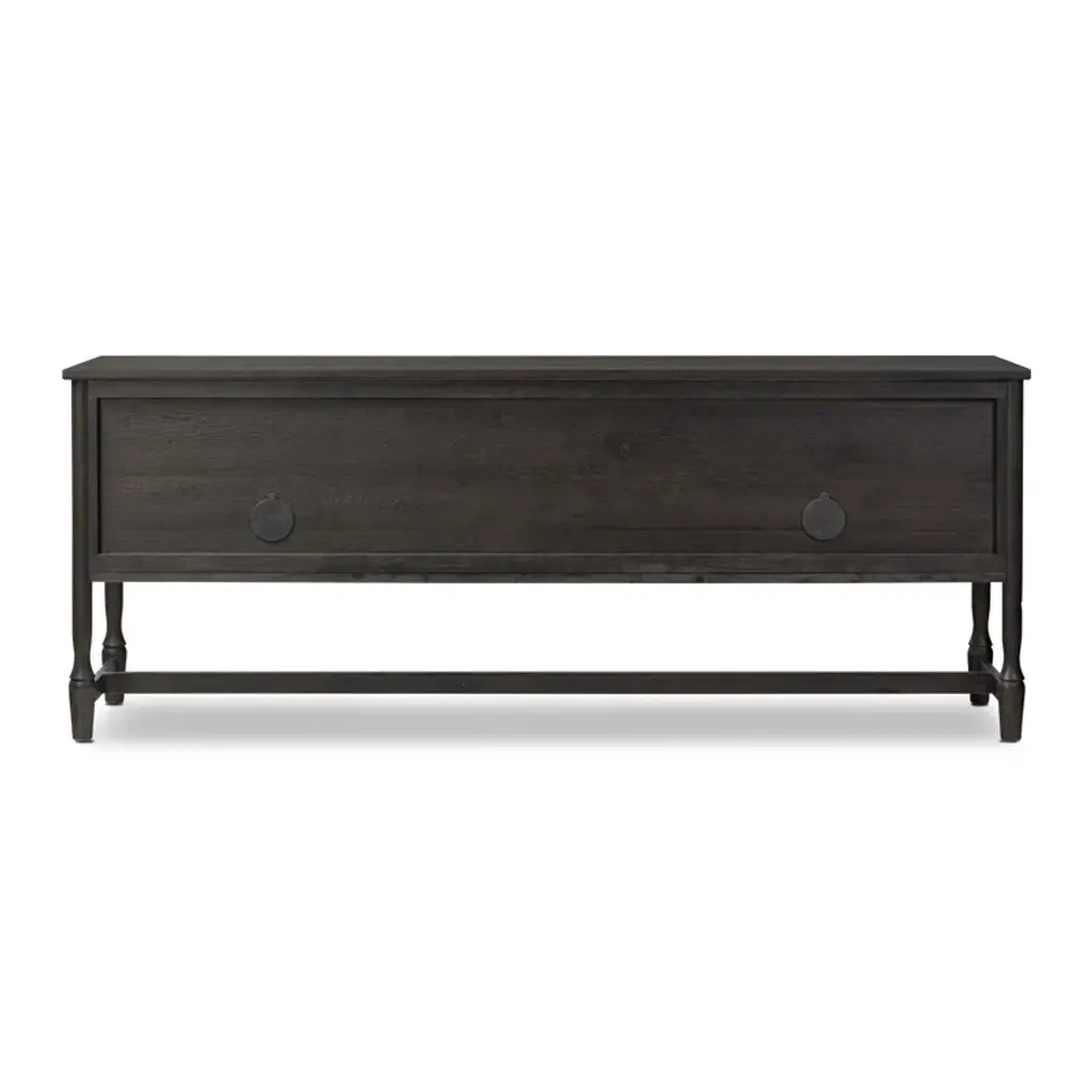 Small, rounded molding and turn shape legs — classic storage with an update. Configured with two drawers in the middle and two doors on either side with bronze hardware, this sideboard offers ample storage space with detailed design, finished to accent the rich characteristics of the wood. A design collaboration by Amber Lewis and Four Hands.