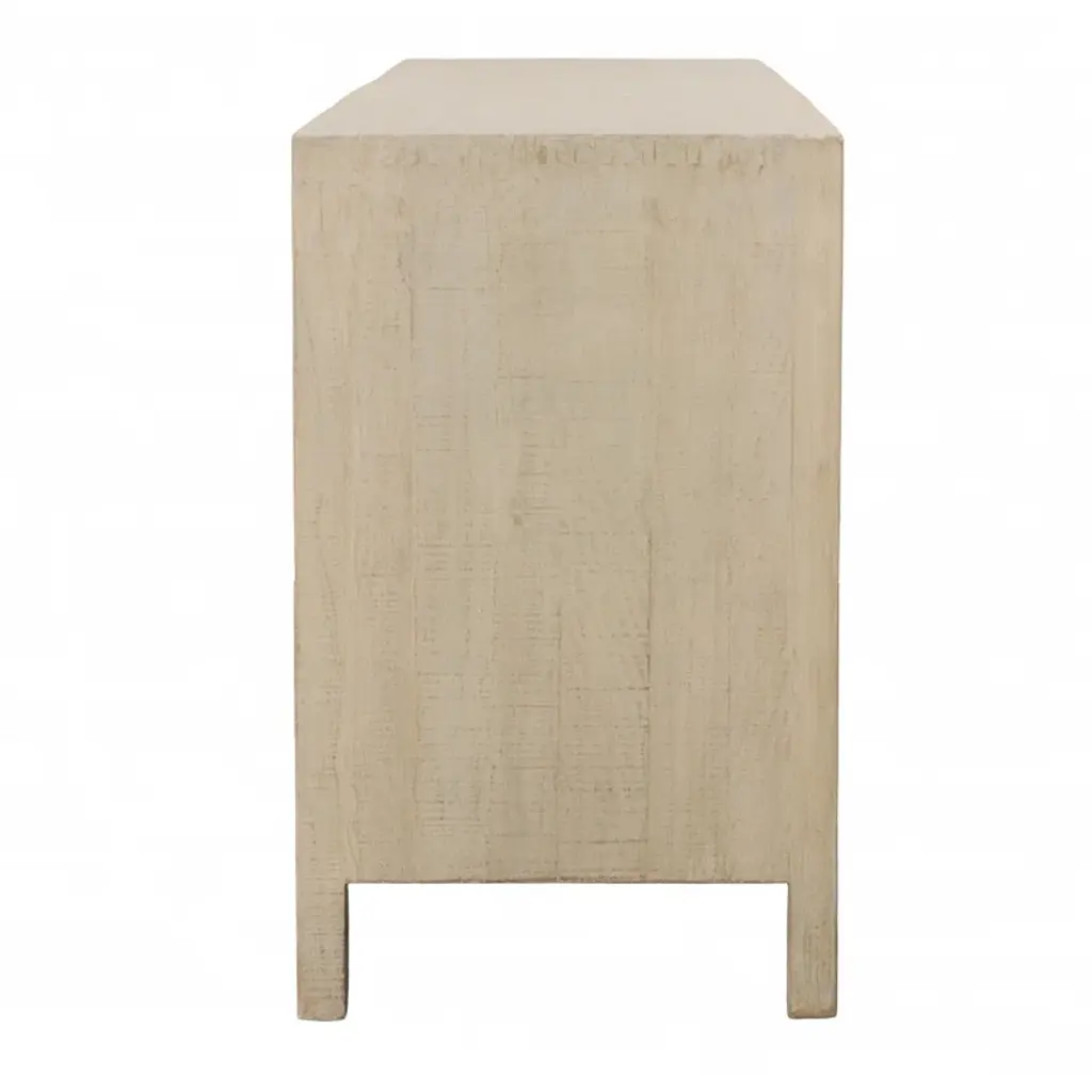 The Abaco 78" Wide Sideboard is a stylish and functional piece, perfect for enhancing your dining or living space. Featuring a light warm wash finish, this sideboard adds a touch of sophistication to any dining or living area. Its spacious interior offers versatile storage options for dinnerware, linens, and other essentials. The sideboard's clean lines and minimalist hardware create a contemporary look that complements various decor styles.