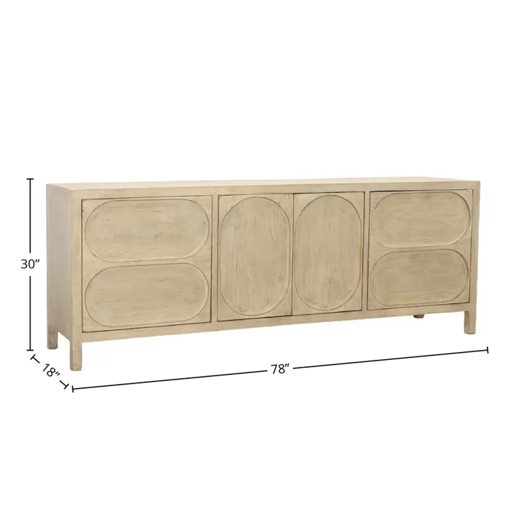 Abaco 78" Wide Reclaimed Pine Sideboard, Light Warm Wash