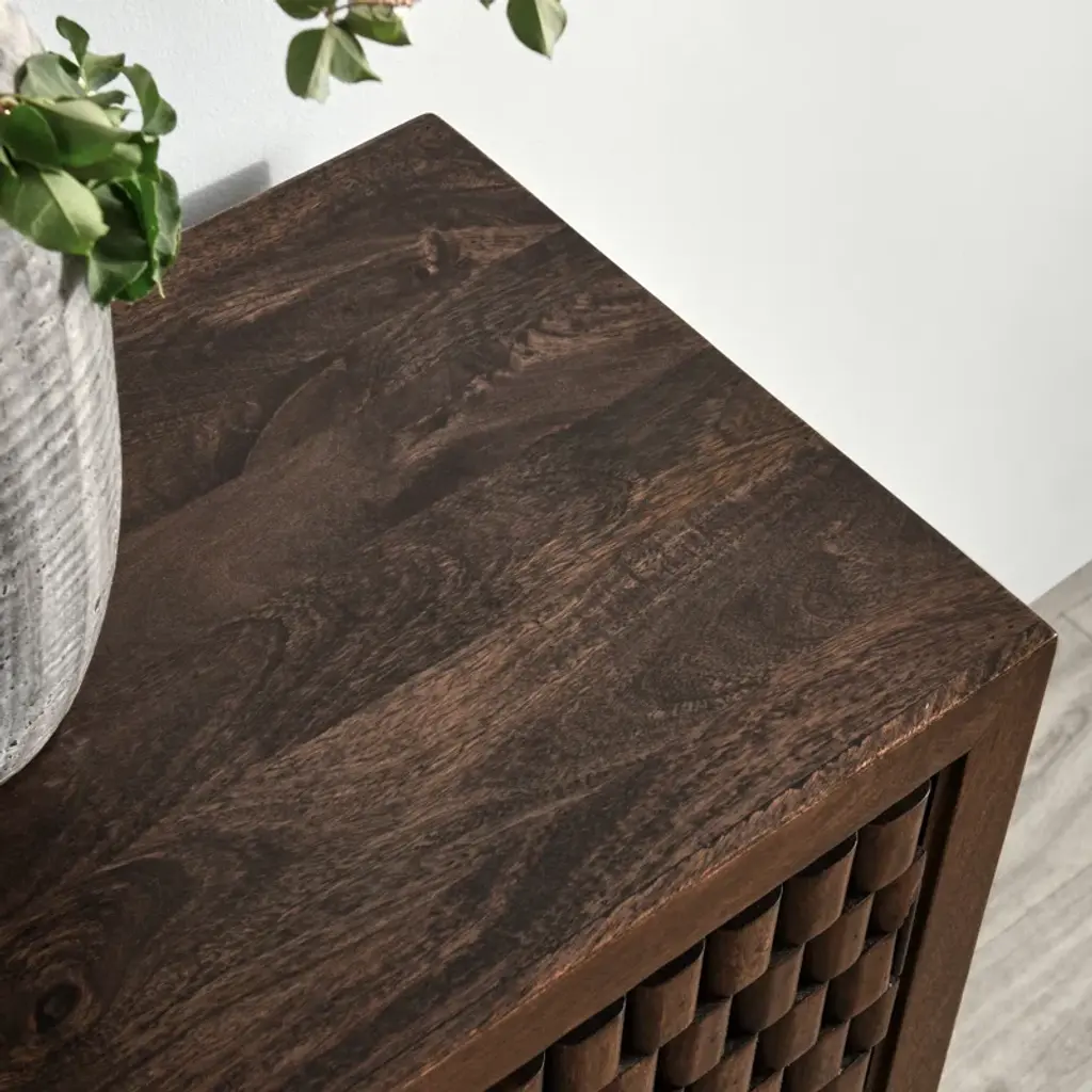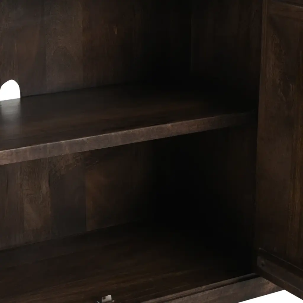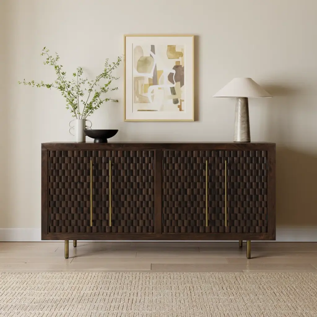 A sideboard like this is just the right blend of Art Deco and mid-century modern. It's crafted from solid mango wood with a wood finish, and the tabletop is spacious enough for a coffee maker and appetizers (or desserts). The cabinets each have a set of double doors with a carved pattern for a distinct dimensional look. Metal hardware provides easy access to interior storage and wire-management cables in the back. To give this server additional stability, a wall anchor is a smart idea (sold separately).