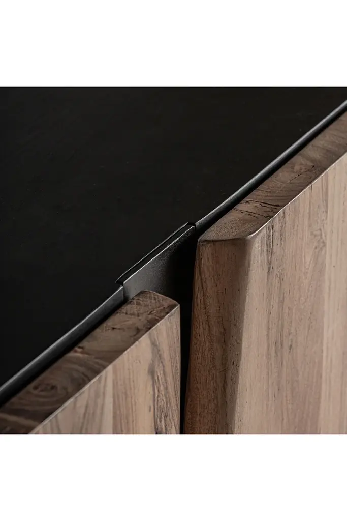 The Kerken sideboard from Vical Home exudes an art deco style, crafted from sleek black acacia wood and complemented by refined brown iron accents. Its four doors offer ample storage space while elevating any room's aesthetic. A fusion of function and elegance, this is a must-have for the sophisticated home.
