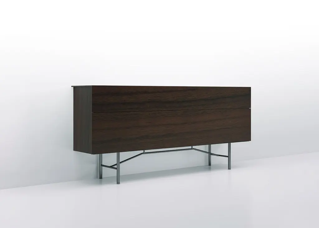 Acerbis Large Grand Buffet Sideboard In Black Eucalyptus With Grey Frame