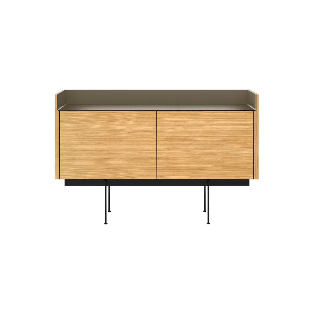 Particularly high buffet, of great storage capacity, characterized by the unusual horizontal division into two compartments with different heights, closed by two large flap doors of finely tapered edges. The upper compartment adopts an evolution of the innovative Dual-Flap® opening system (Acerbis patent). In just one simple gesture the front panel tilts down, while part of the top rises to reveal the full contents of the unit, backlit by a LED illuminated white methacrylate rear panel. The upper door, once open, offers a bearing surface at an especially convenient height for serving. Doors and top are matt lacquered, glossy lacquered or veneered. External sides are matt lacquered or veneered. Matt Slate Grey lacquered interior, dividers and back-lit rear panel in matt metahacrylate. LED lighting system with automatic switching on at door opening. Transparent glass shelves. Metal base with brushed nickel finish.Finishes- Lacquered colours: Black, White, White SW, Ghiaia Grey, Pietra Grey, Fumo Grey, Lino, Sabbia, Warm Grey, Argilla, Red NY, Red Vico, Blue Iseo, Green Iseo.- Veneers: brown oak, lauro preto, thermo-treated eucalyptus, black eucalyptus.Born on 13 November 1957, Massimo Castagna graduated in architecture in 1984 from Milan Politecnico; he began his professional activities in 1986, founding the studio AD architettura. He has gained considerable professional experience in the field of architecture, interior design, art direction and design in the furnishing sector. One of his major creations has been the “Piramide” laboratory the Everest-K2-CNR scientific committee for the Italian National Research Council, which was built in Nepal beginning in 1991 at an altitude of 5050 m., to be used as a high-altitude research laboratory, a project selected for the 18th Milan Triennale.Additional Information:Material: Wood, steelFrame finish: Matt lacquered dark green LO90Base finish: Micaceous grey paintedDimensions: 250 W x 48 D x 111 H cmAvailable in other frame finish options: Glossy lacquered white LL02, Glossy lacquered SW white LL09, Glossy lacquered linen LL10, Glossy lacquered sand LL12, Glossy lacquered clay LL15, Glossy lacquered mustard yellow LL23, Glossy lacquered brick red LL24, Glossy lacquered burgundy LL20, Glossy lacquered pink LL21, Glossy lacquered dark green LL22, Glossy lacquered Navy blue LL25, Glossy lacquered black LL06, Matt lacquered white LO73, Matt lacquered SW white LO74, Matt lacquered linen LO75, Matt lacquered sand LO76, Matt lacquered clay LO81, Matt lacquered mustard yellow LO91, Matt lacquered brick red LO92, Matt lacquered burgundy LO88, Matt lacquered pink LO89, Matt lacquered Navy blue LO93, Matt lacquered black LO72, Eucalyptus ES48, Black eucalyptus ES47Available in other size option: SmallAvailable in other versions:Power cable kit - Power cable with lucid LED power supply unit and touch switch a power supply unit must be added for each composition up to 240 cm, power supply unit 220-110 VOptional drawer - Max 1 per compartment, slate grey matt lacquer finishAvailable in other various options.
