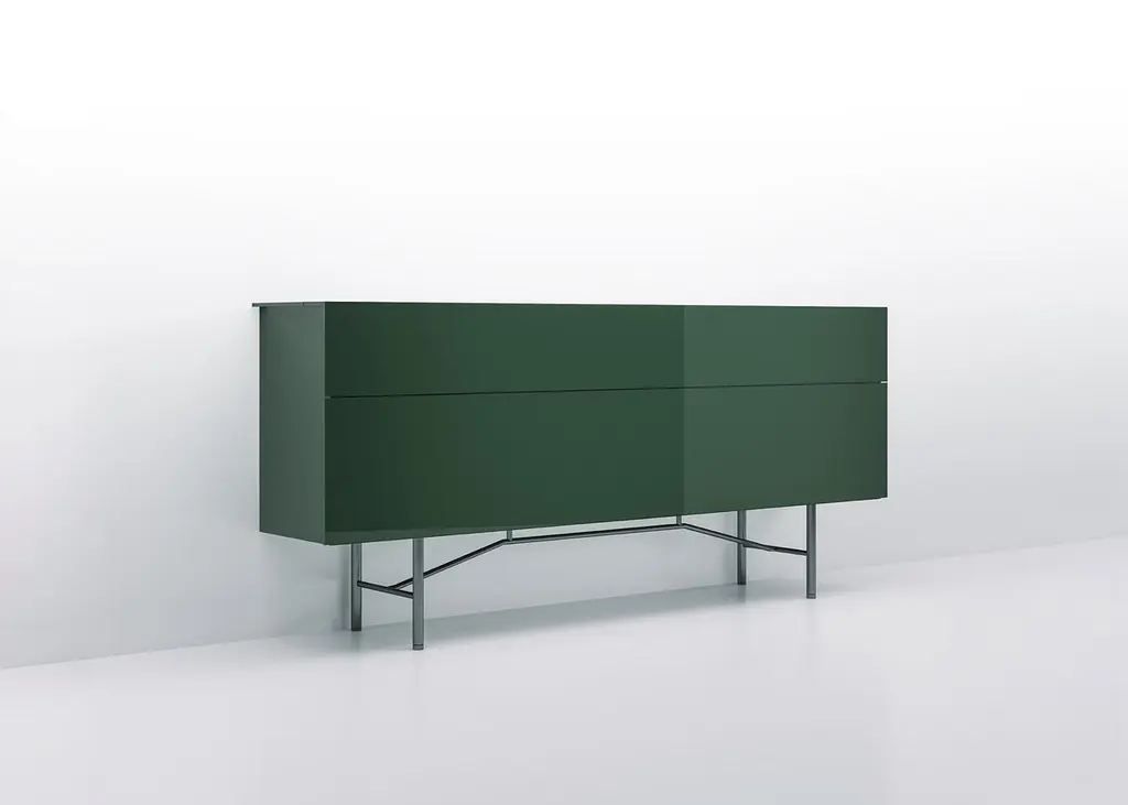 Acerbis Large Grand Buffet Sideboard In Matt Lacquered Dark Green & Grey Frame