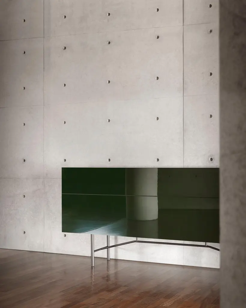 Acerbis Small Grand Buffet Sideboard In Matt Lacquered Dark Green & Grey Frame
