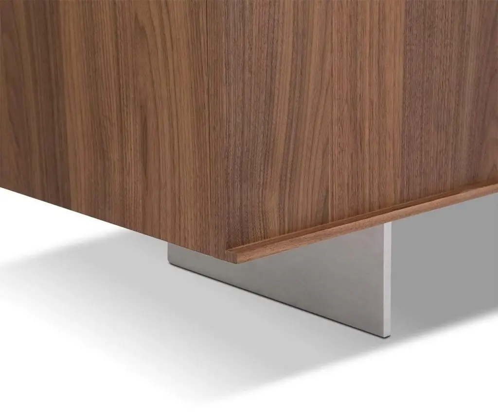Functional, meet fashionable. That's the idea behind the Acero Sideboard. A heat and moisture-resistant ceramic top contrasts beautifully with walnut veneer. Eight shelves and four separate cabinet doors give you plenty of storage for dinnerware, vases and other dining essentials.