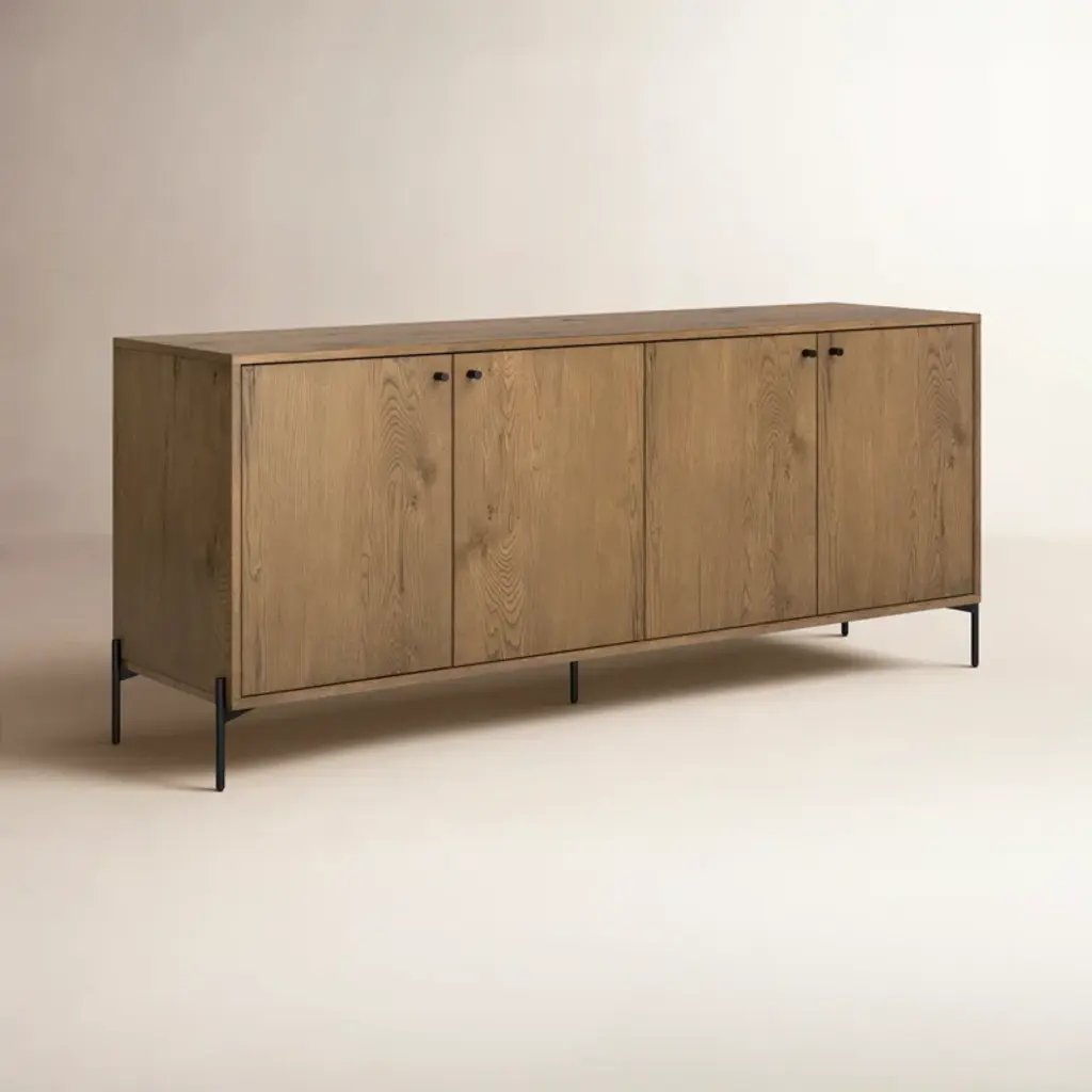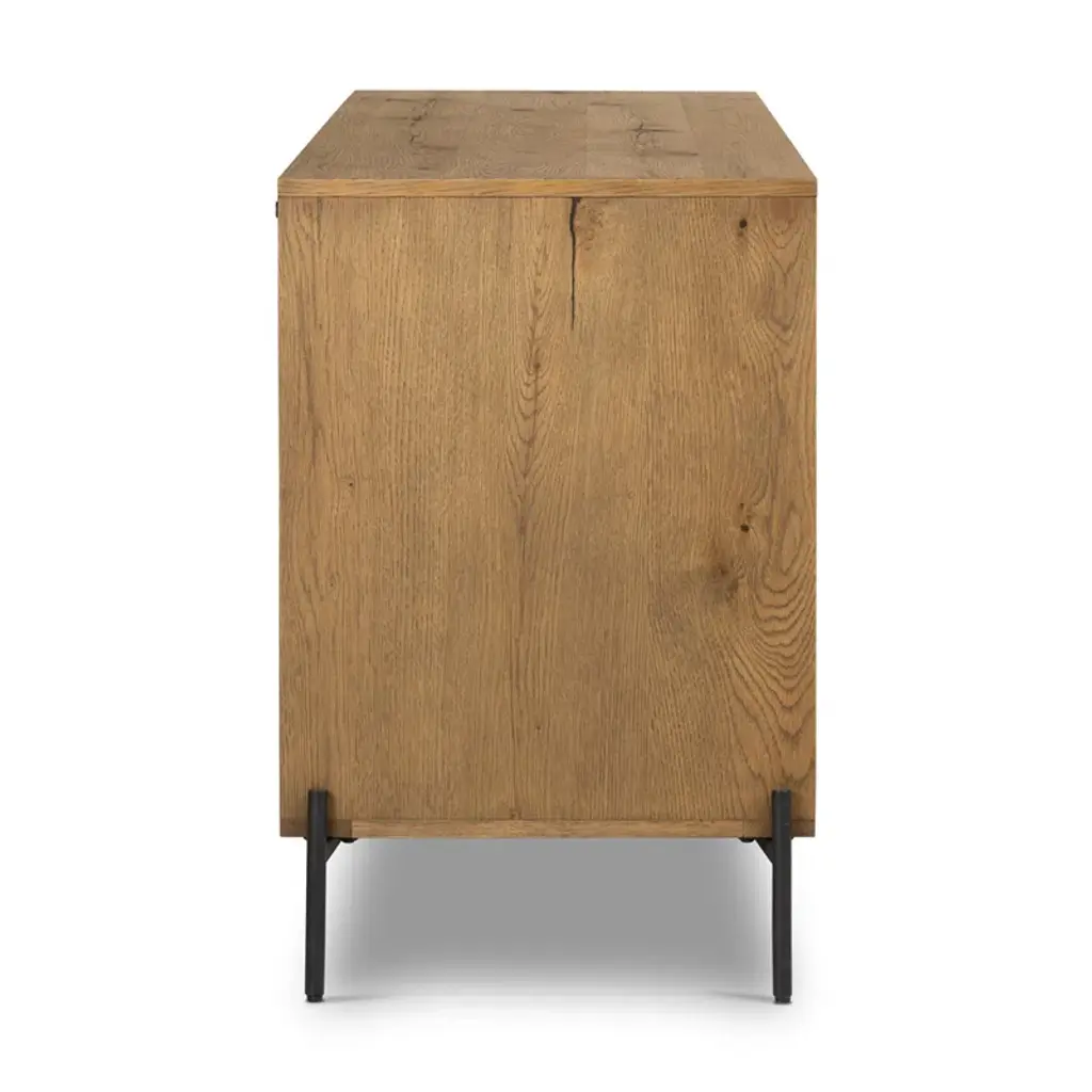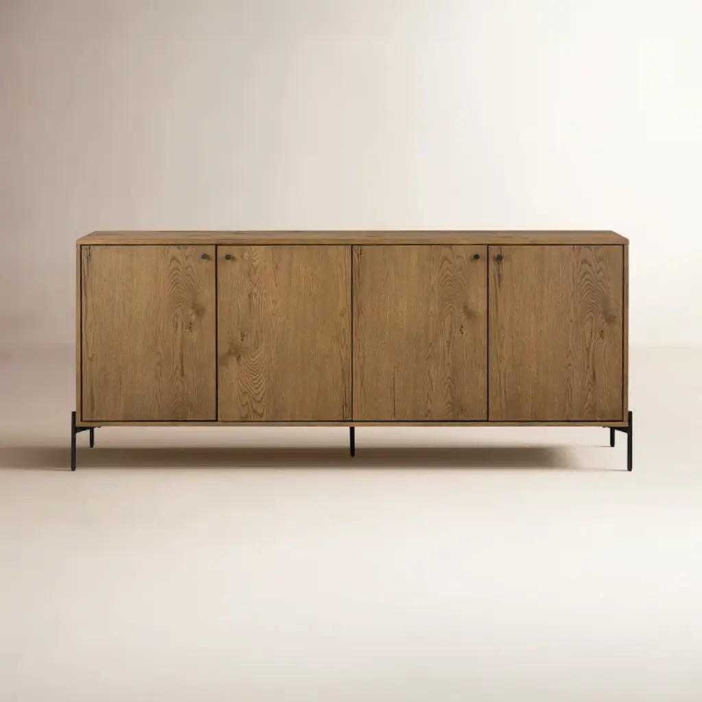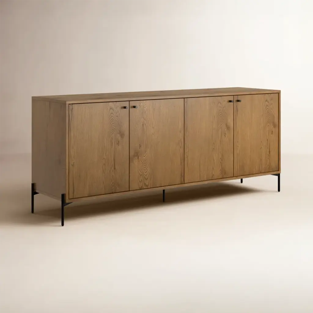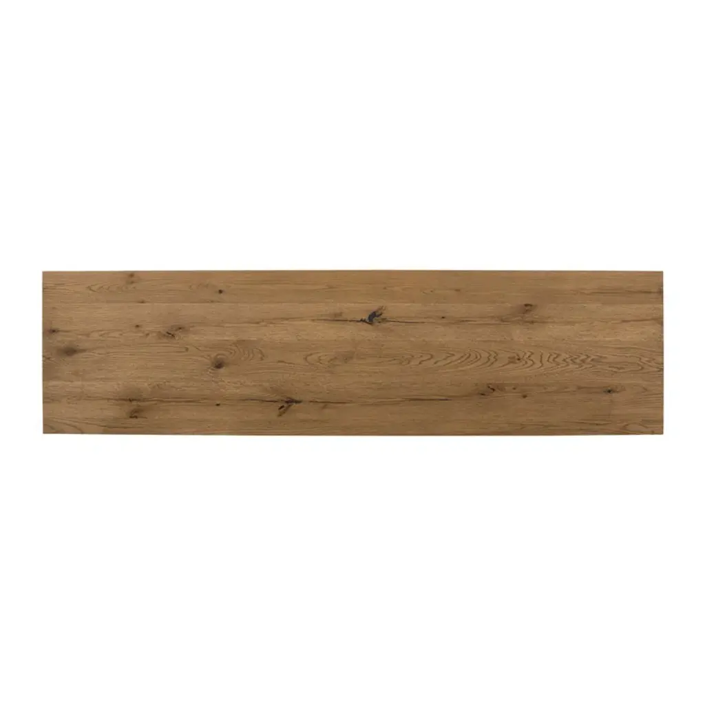 Wire brushing brings added texture to light, mixed woods, and rich oak veneers, with architectural details and iron hardware fusing for a uniquely modern take on simply styled, organic-leaning looks.