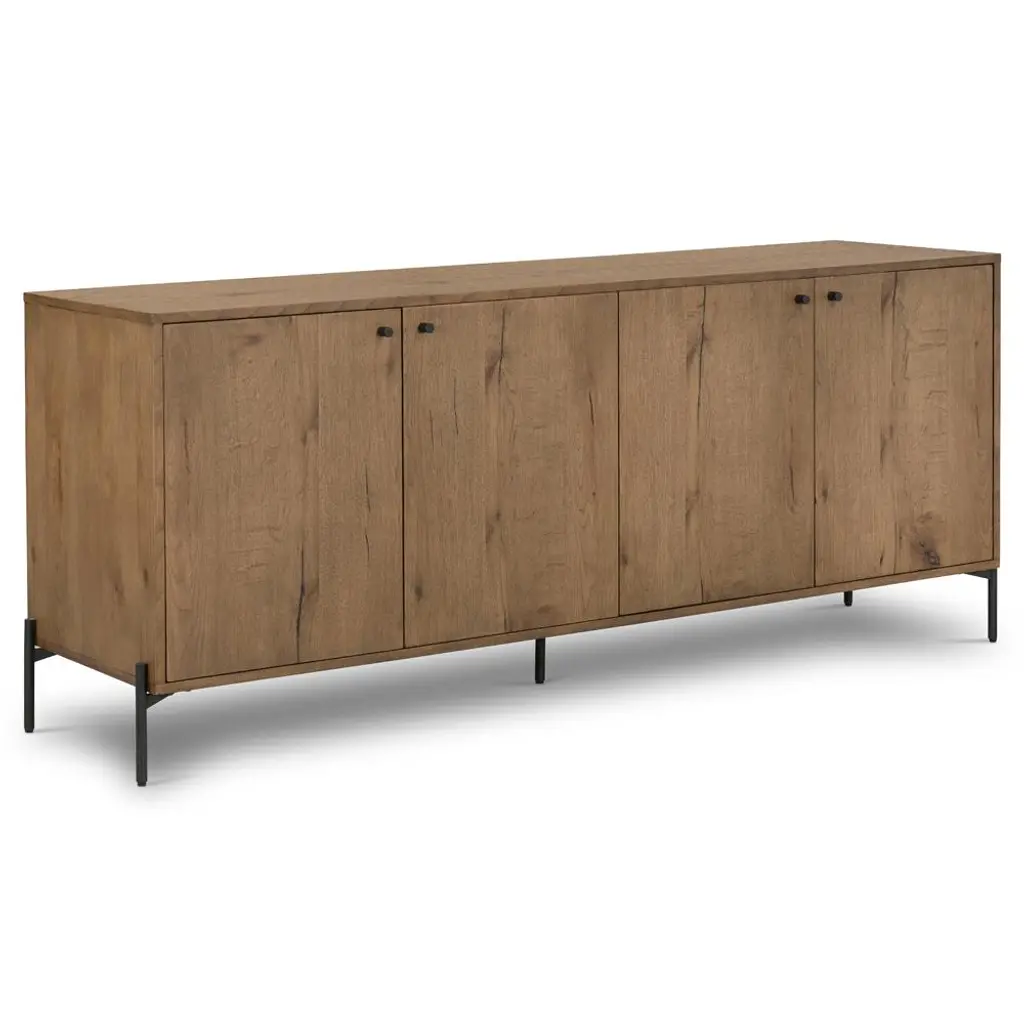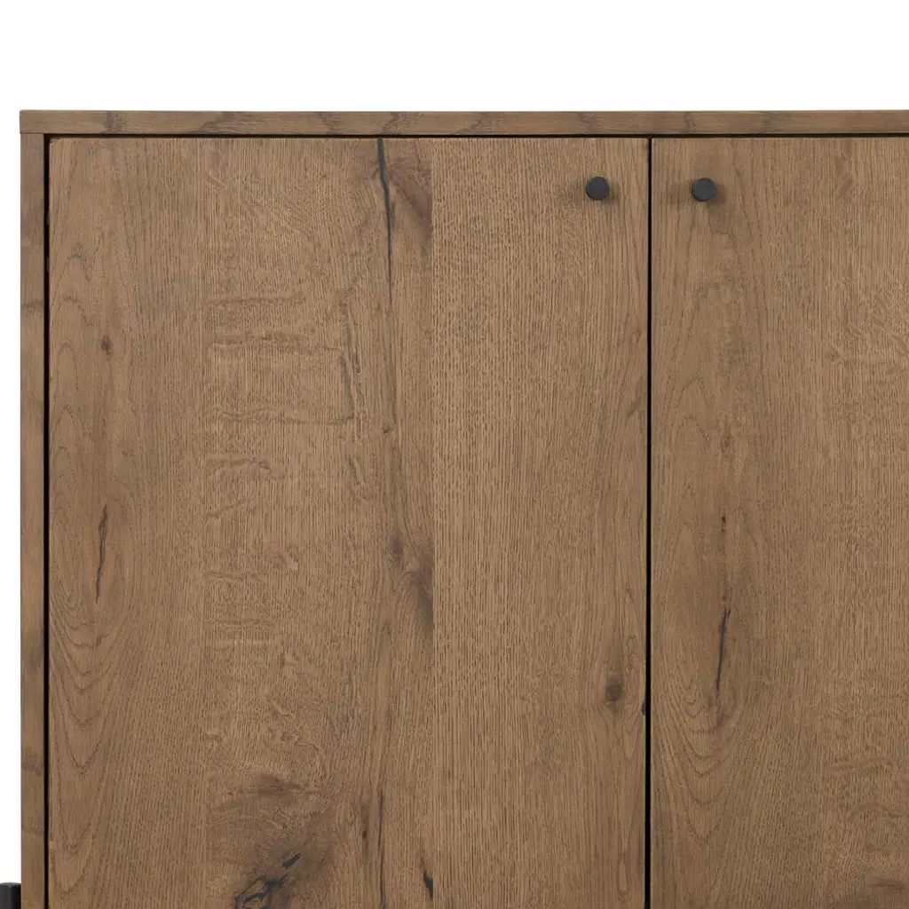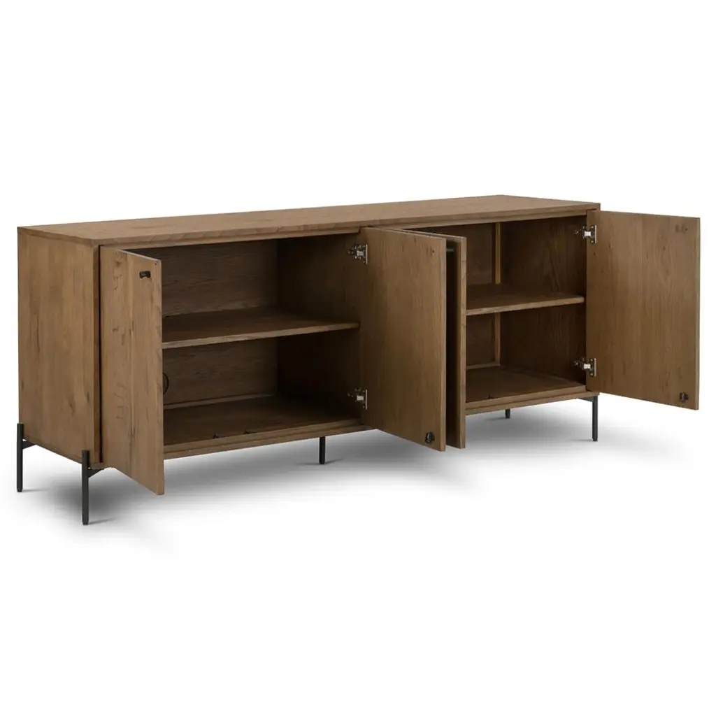Alina Rustic Lodge Brown Oak Wood Black Iron 4 Door Rectangular Sideboard