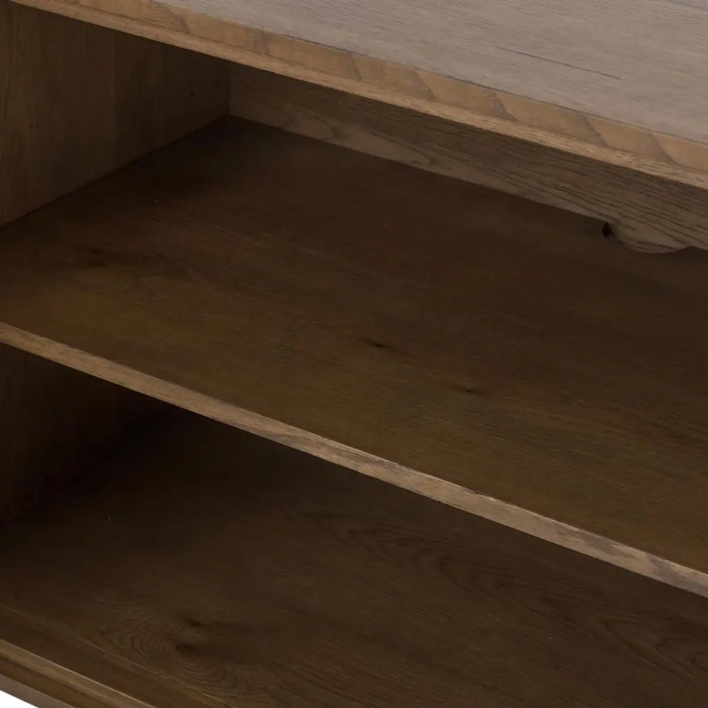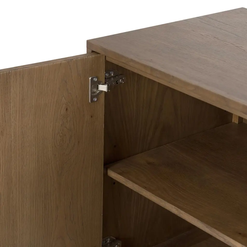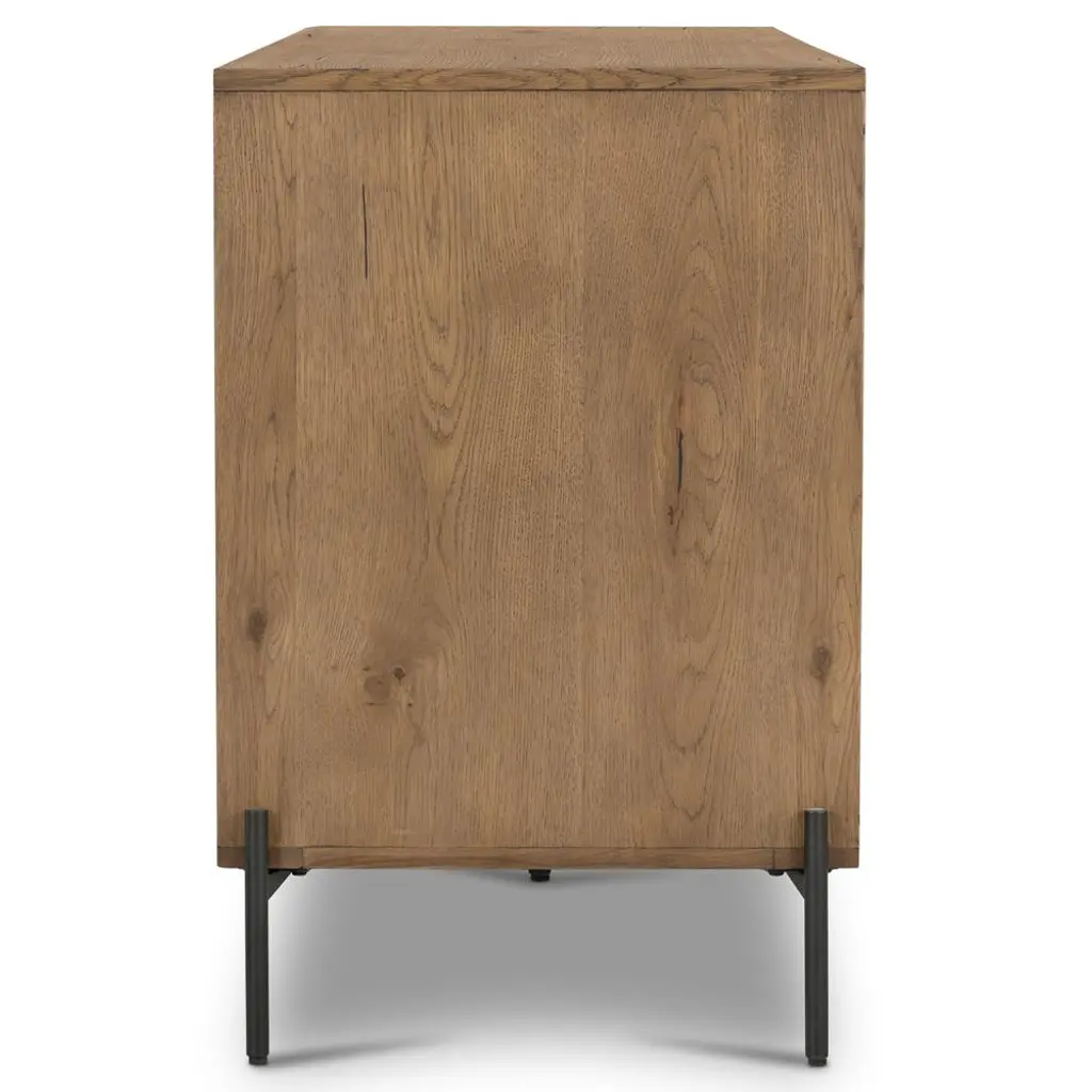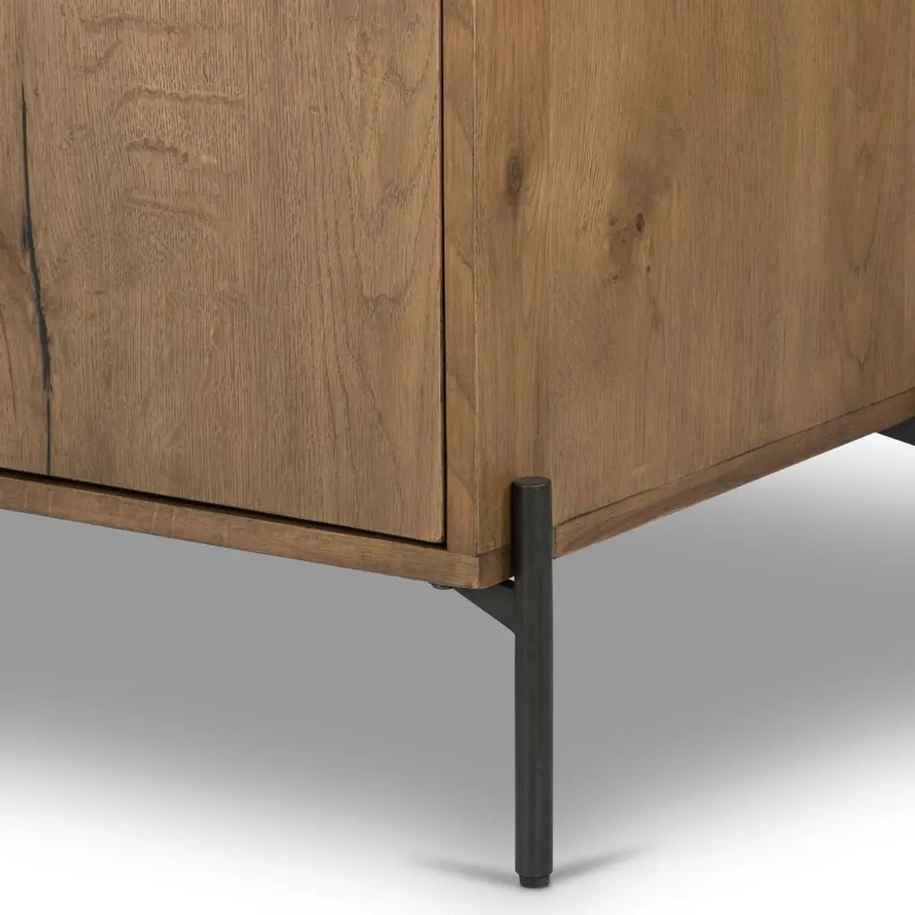 Alina Rustic Lodge Brown Oak Wood Black Iron 4 Door Rectangular Sideboard
