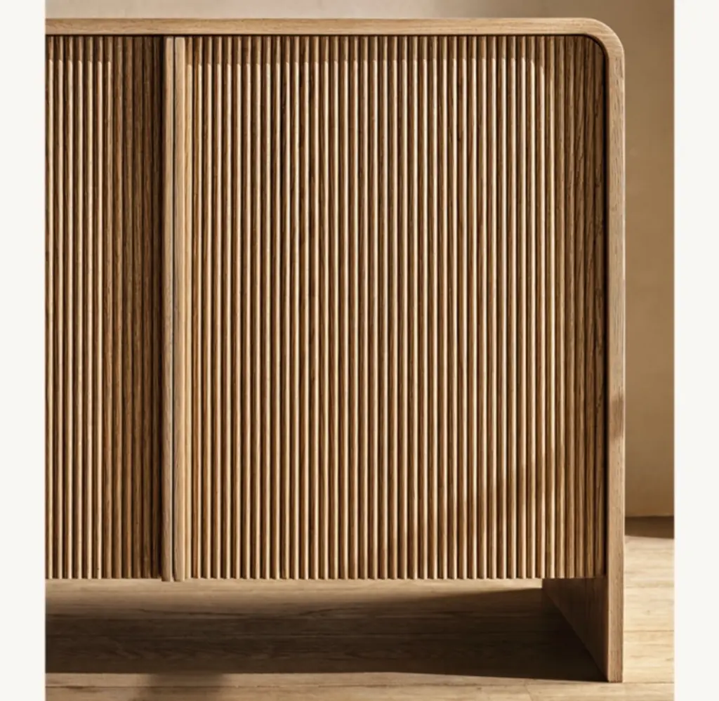 Artisan crafted of American white oak, Alora by California designer Lindye Galloway is a dynamic blend of sleek planes and radius curves. Smooth waterfall edges and a wire-brushed finish highlight the frame's continuous woodgrain pattern, while vertical solid oak reeding adds a textural counterpoint. SHOP THE ENTIRE COLLECTIONEXPLORE ALL REEDED COLLECTIONS