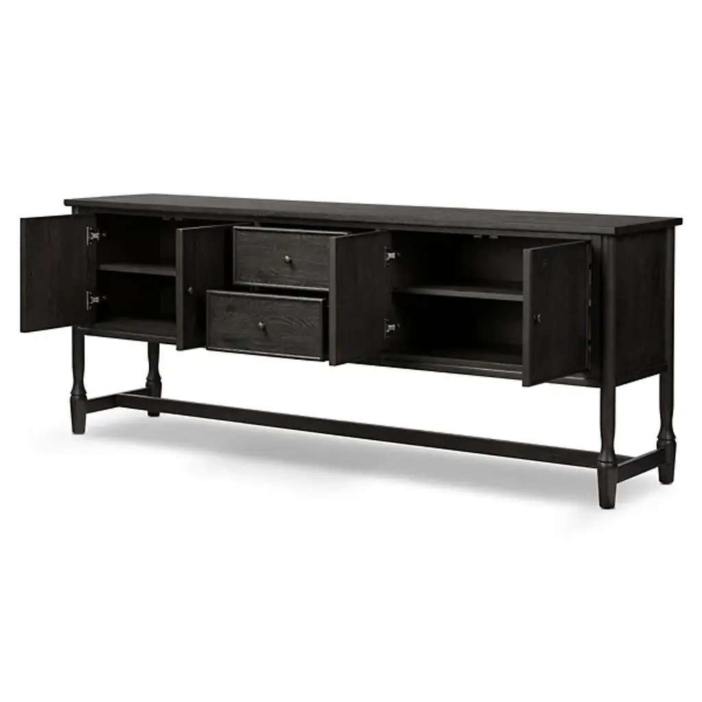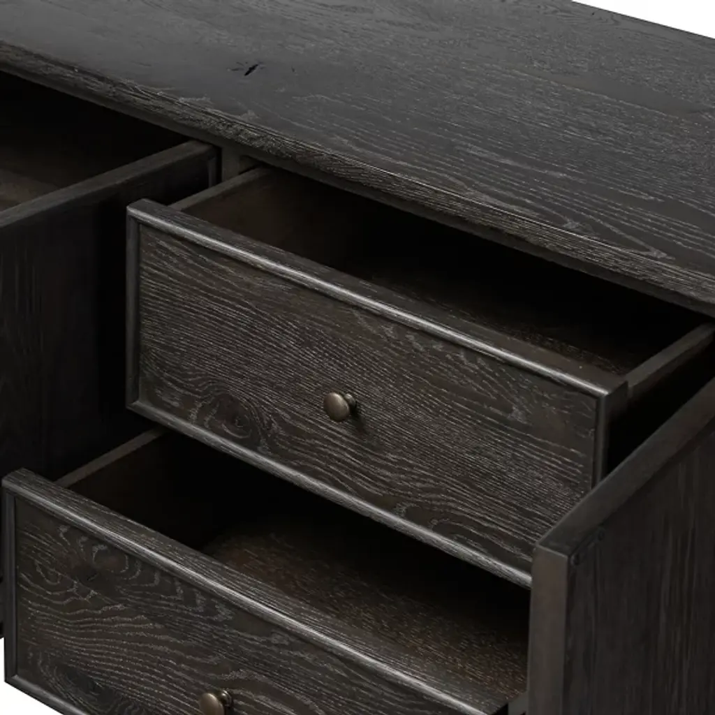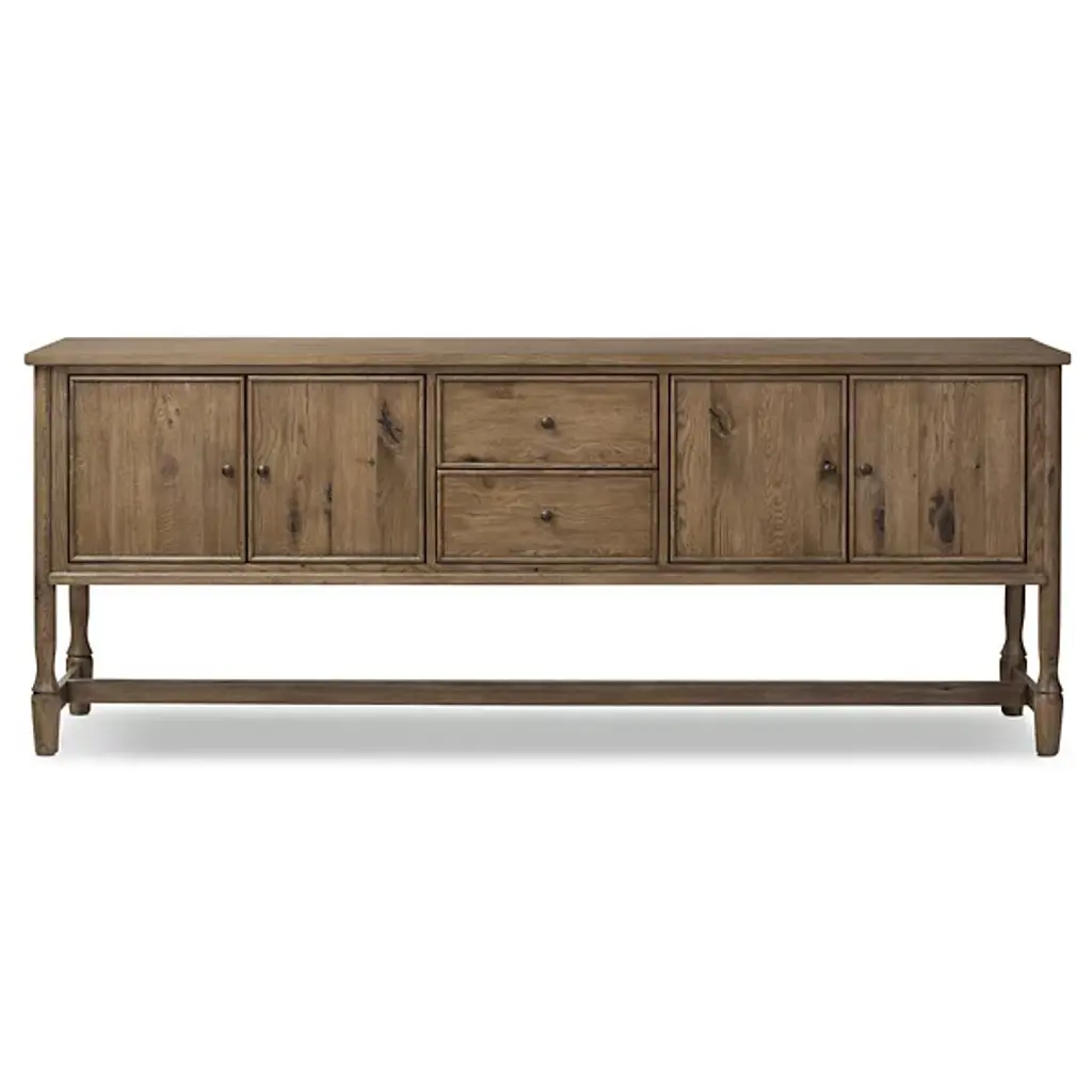 The Amber Lewis x Four Hands Bari Sideboard is a contemporary dining room storage solution from Four Hands. It is meticulously crafted from thick oak veneer and solid oak, bringing natural beauty to your space. This sideboard is durably made for the effortless containment of your dining essentials. Bari boasts small, rounded molding and has 2 doors as well as 2 drawers in the middle. Bari’s turn shape legs keep the sideboard supported.