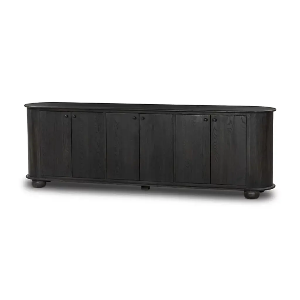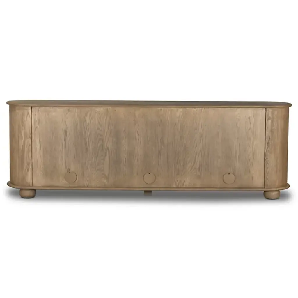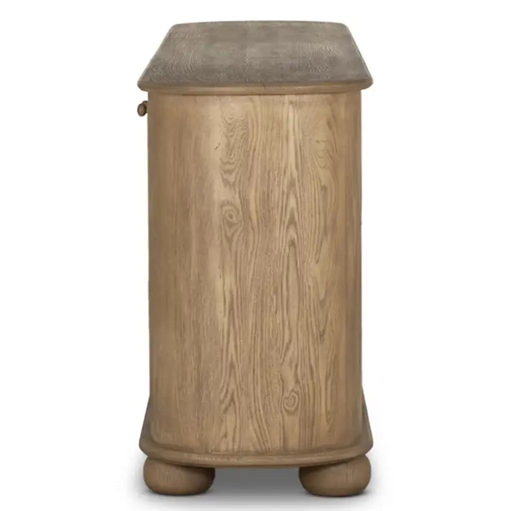 The Amber Lewis x Four Hands Makai Sideboard from Four Hands is a streamlined storage solution for your indoor dining space. Makai is expertly crafted from solid oak. This composition makes it durable while bringing the beauty of nature to your living area. It features multiple doors, each with its own pull, opening effortlessly to reveal storage shelving for the containment of your dishware and home essentials. Lowell’s rounded features exude contemporary charm.