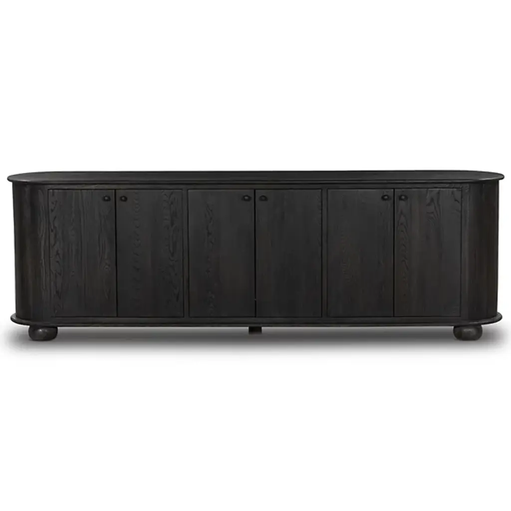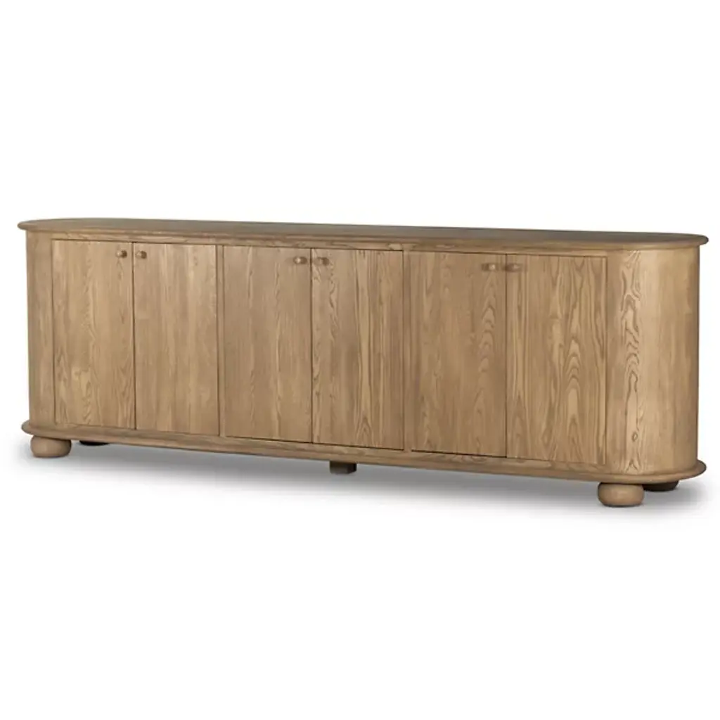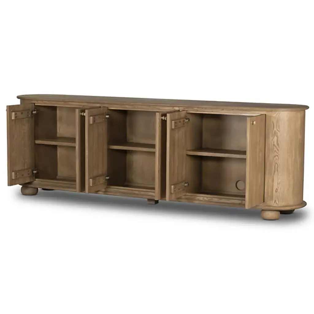 The Amber Lewis x Four Hands Makai Sideboard from Four Hands is a streamlined storage solution for your indoor dining space. Makai is expertly crafted from solid oak. This composition makes it durable while bringing the beauty of nature to your living area. It features multiple doors, each with its own pull, opening effortlessly to reveal storage shelving for the containment of your dishware and home essentials. Lowell’s rounded features exude contemporary charm.