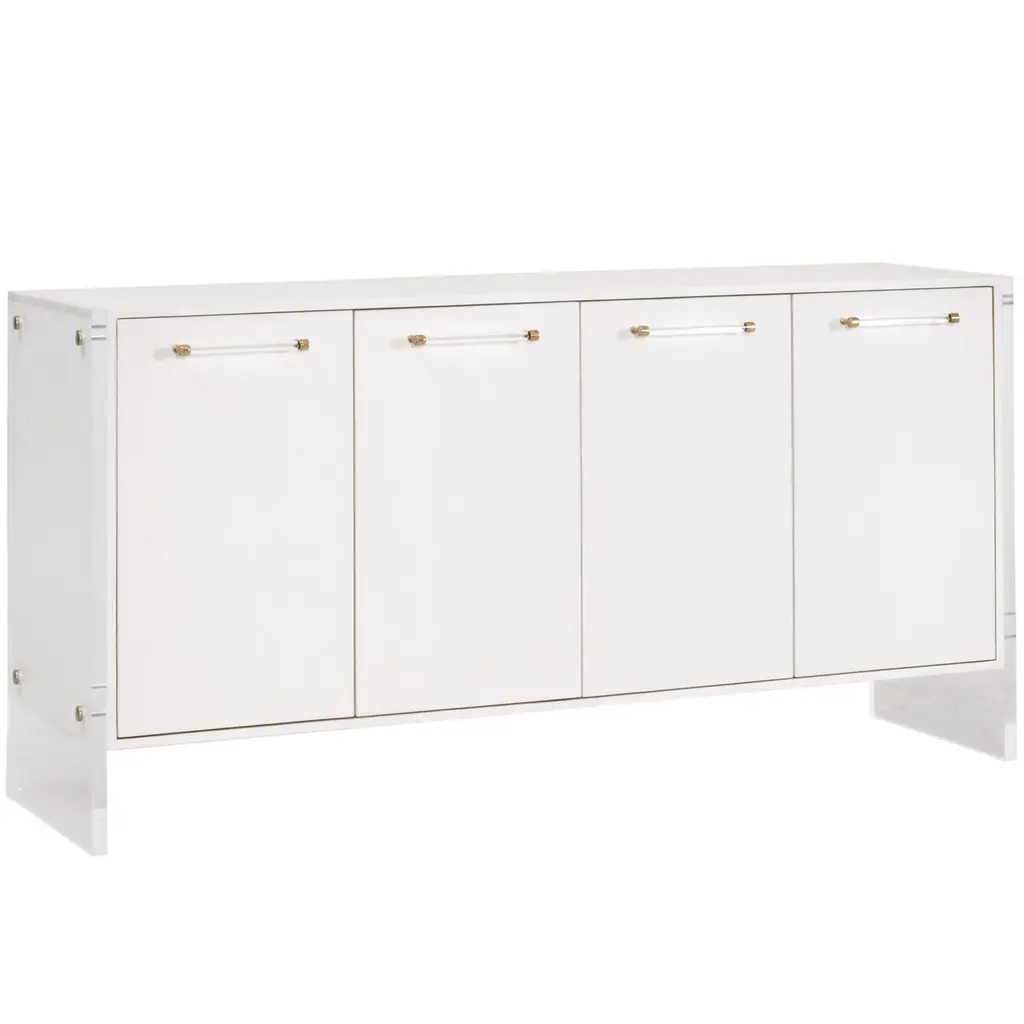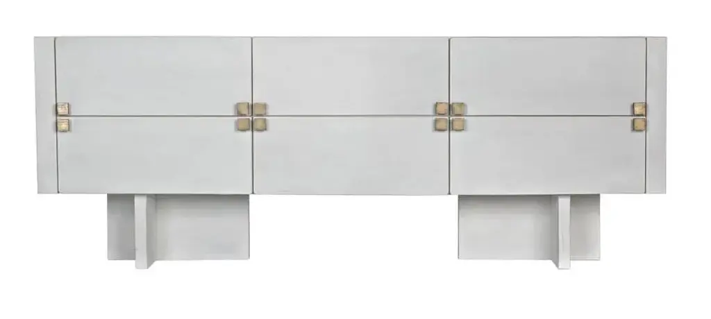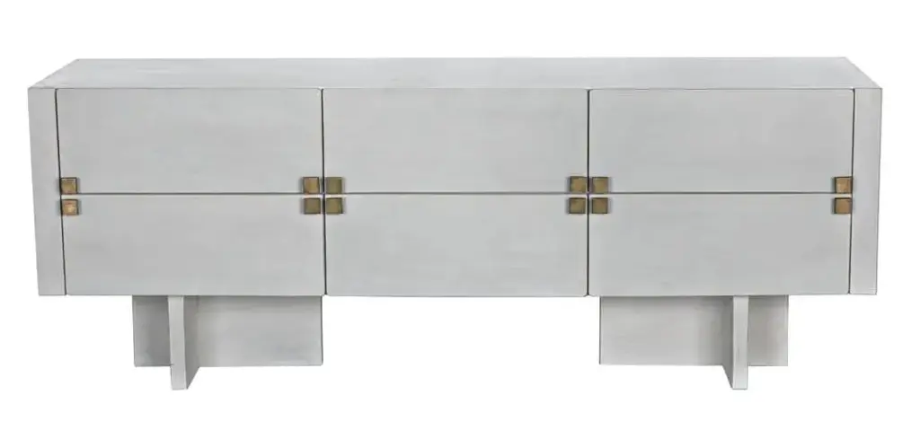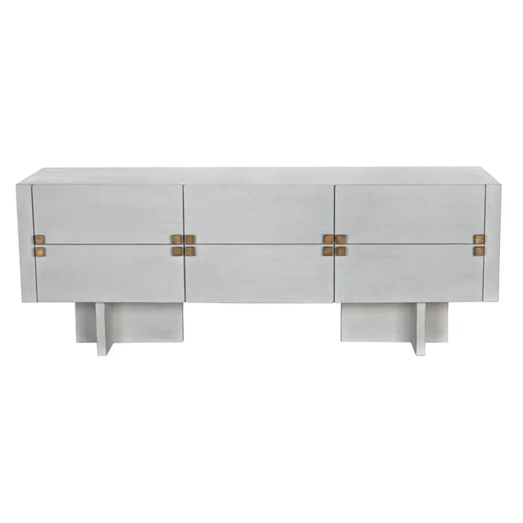 This powerful design turns a traditional sideboard into a style statement. Handcrafted of fine mahogany in a clean whitewashed finish, it features six drawers and provides generous storage. Addition features include square drawer pulls that double as striking accents, and a tall T-shaped base that supplies height.