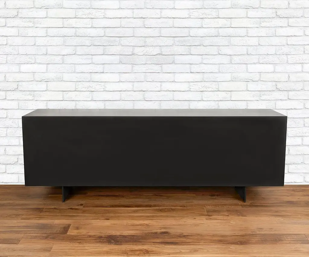 With its modern, mixed-material design, the mid-century Andor Sideboard will make a statement in any setting. The matte black metal frame is warmed by reclaimed teak doors with rustic-inspired wear marks, so it will instantly elevate your space, while remaining versatile enough for most decor styles. Mix and match it with other items in the Andor Collection for a complete, heirloom-quality display. The natural feel of this piece is anchored by organic features such as knots, highlighted wood grain, natural splits in the wood and color variations.