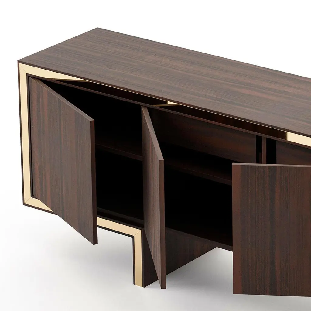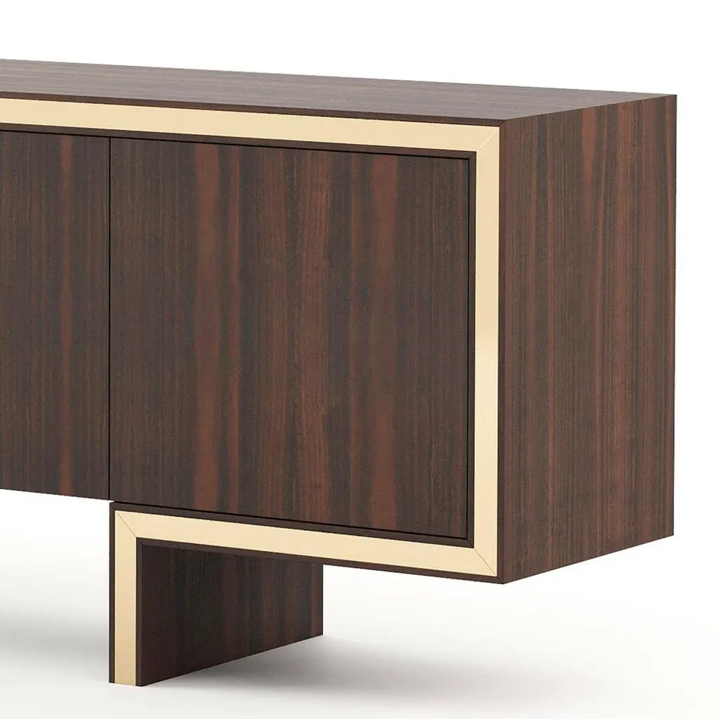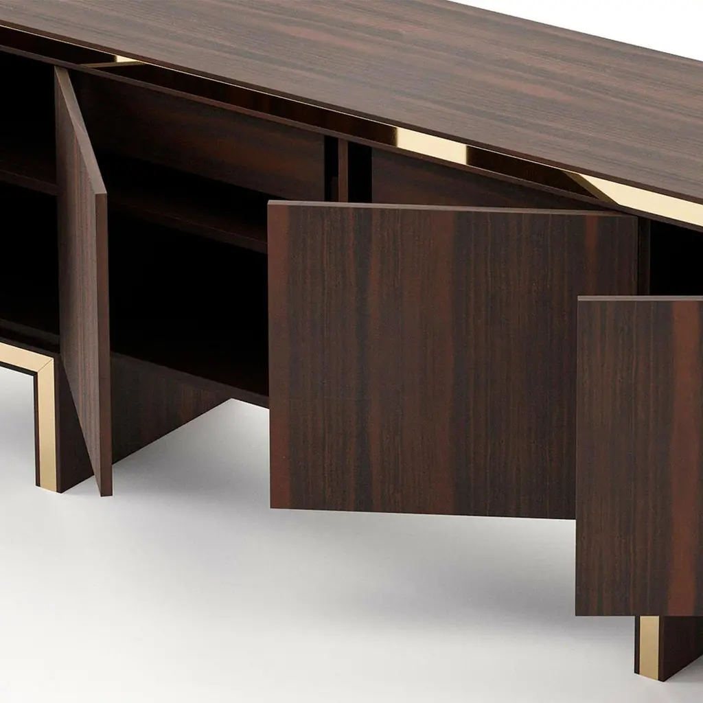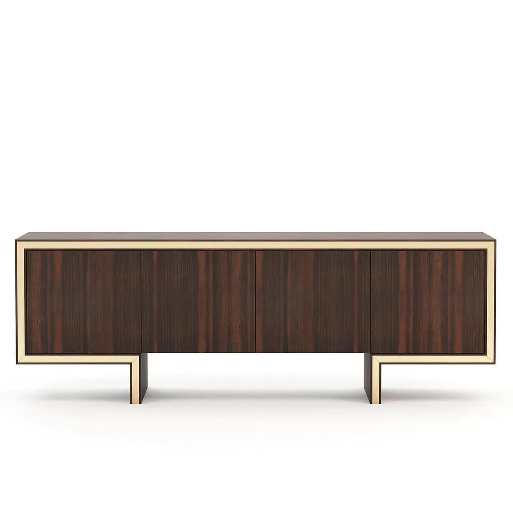 Sideboard Andora with structure in eucalyptus woodveneer in matte finish, with 4 doors and with 1 shelf on each part. With polished stainless steel trim in gold finish.Also available in ebony glossy, or in grey eucalyptus glossyor matte, or in old-aged oak matte, or in eucalyptus smockedglossy, or in oak smocked matte or in walnut glossy or matte,or in ash black matte, or in natural oak finish, on request.Also available on request in L200xD50xH83cm.