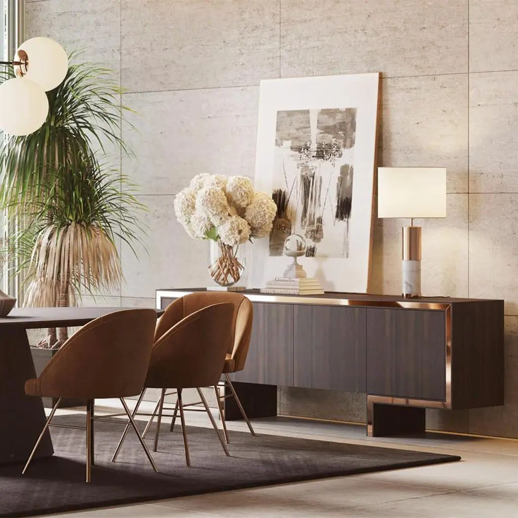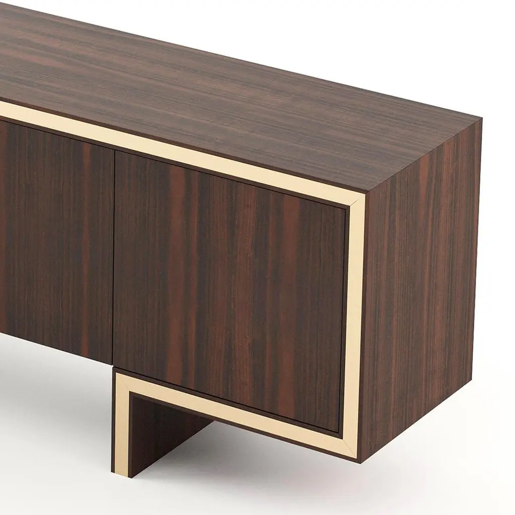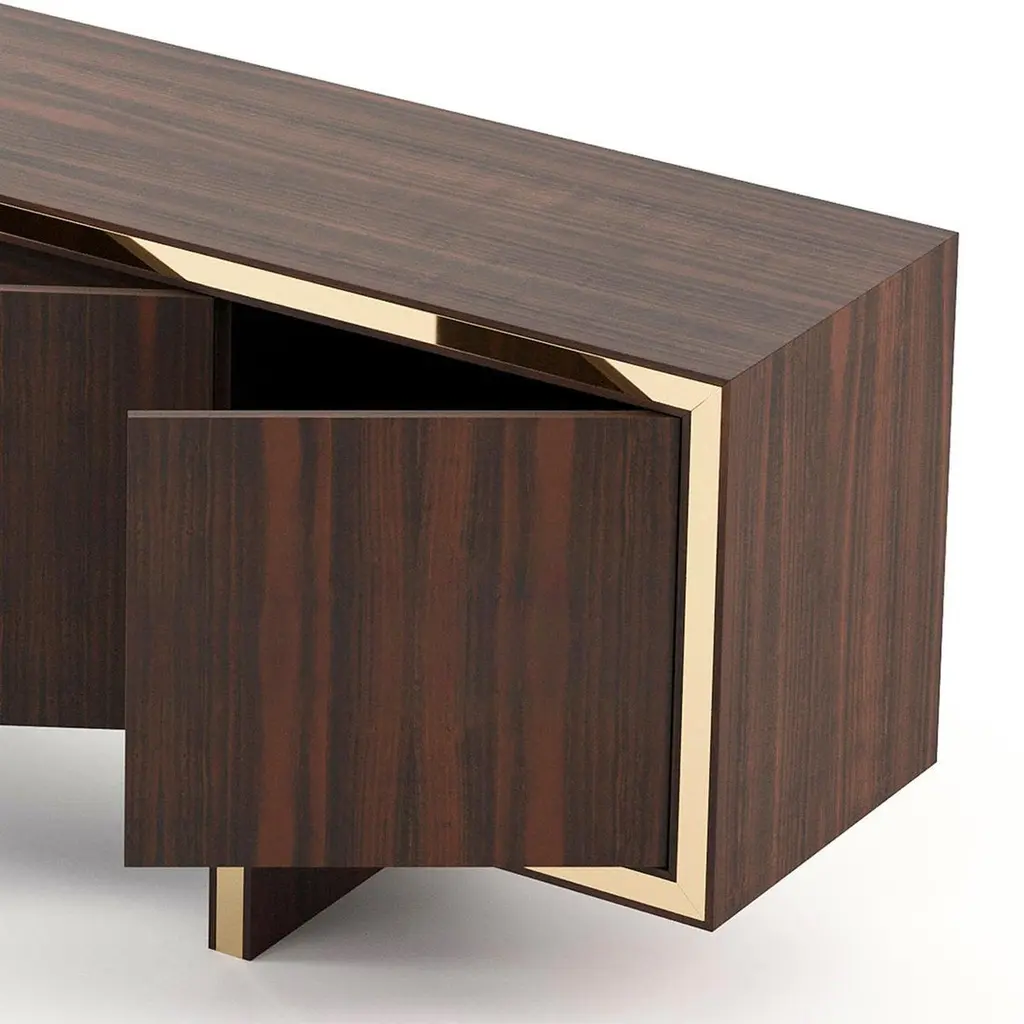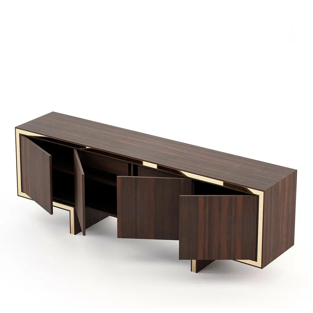 Sideboard Andora with structure in eucalyptus woodveneer in matte finish, with 4 doors and with 1 shelf on each part. With polished stainless steel trim in gold finish.Also available in ebony glossy, or in grey eucalyptus glossyor matte, or in old-aged oak matte, or in eucalyptus smockedglossy, or in oak smocked matte or in walnut glossy or matte,or in ash black matte, or in natural oak finish, on request.Also available on request in L200xD50xH83cm.
