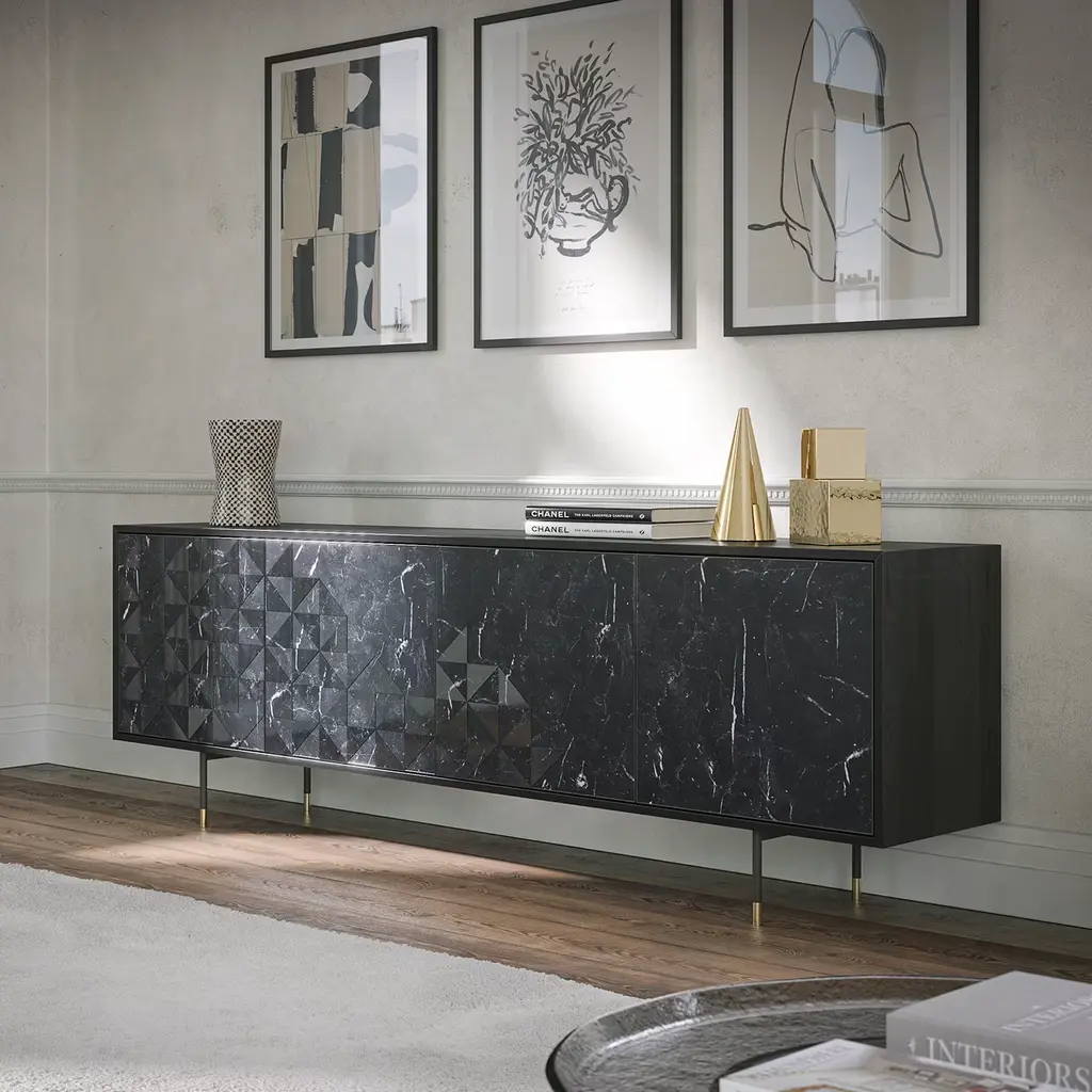 Apogeo 4-Door Carnic Gray Marble Sideboard