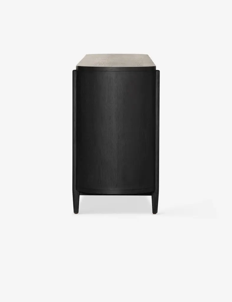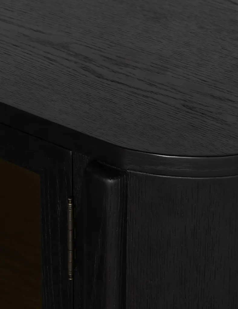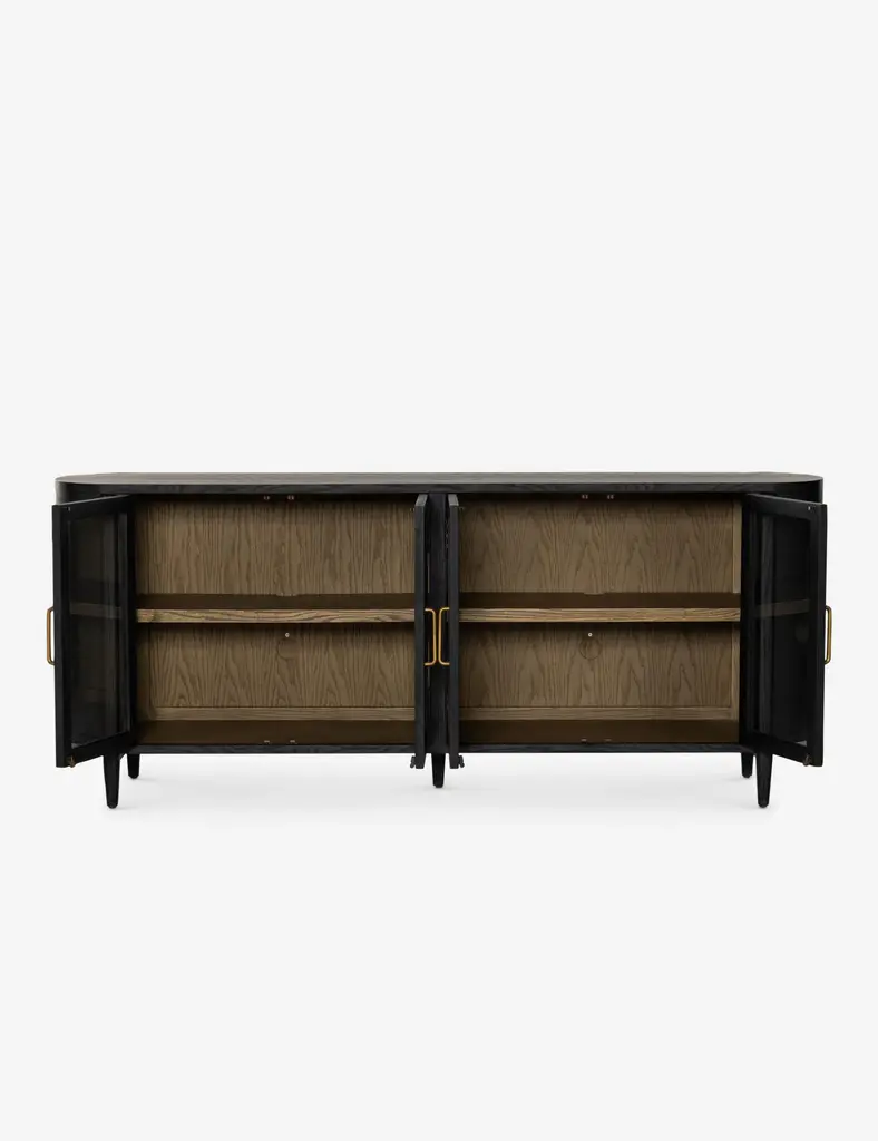 With its rounded sides and spacious top, this sideboard is the perfect showcase for storage and decor. Its beautifully-crafted cabinetry of solid oak features interior shelving and clear glass doors, ready for displaying special-occasional dinnerware, favorite books, and treasures.