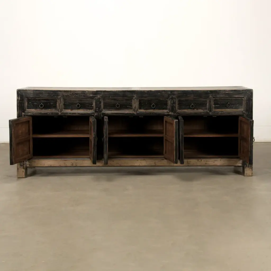 Approx. 91 Inches Sideboard With Six Drawers Distressed Black