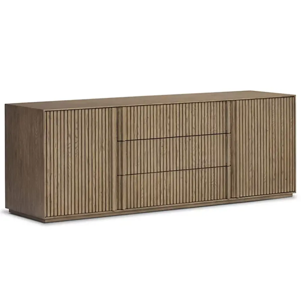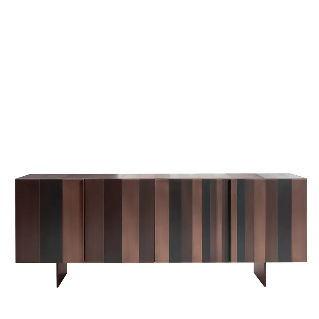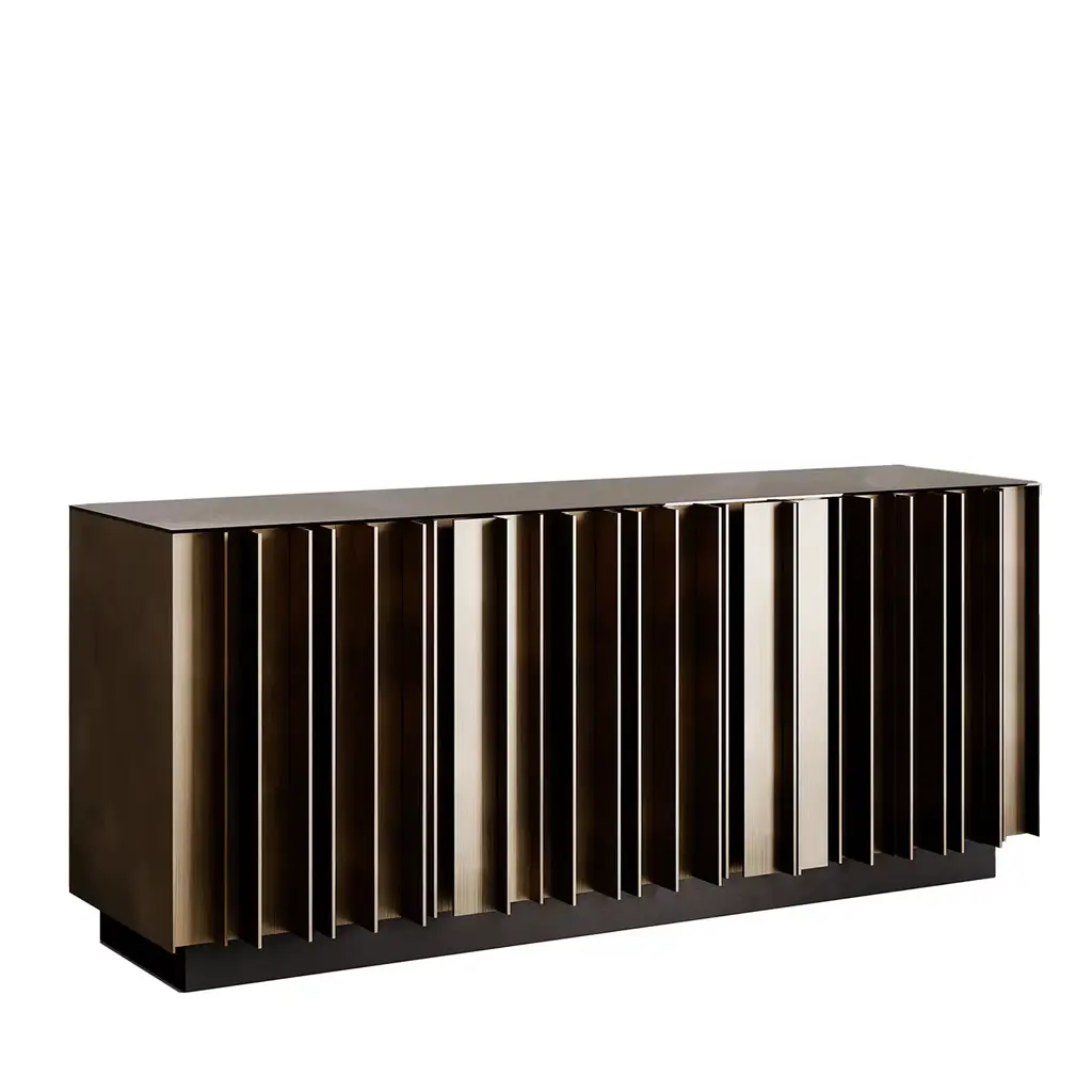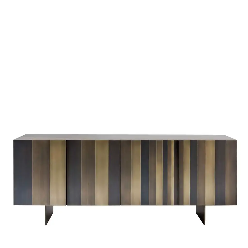Best arranged in a contemporary-inspired living or dining area, this sideboard features an elegant and minimalist design enhanced with a ribbed texture. Crafted of lacquered MDF, it is enriched with thermo-heated ash wood doors and metal details. Please consult the Concierge for further information on materials and finishes.