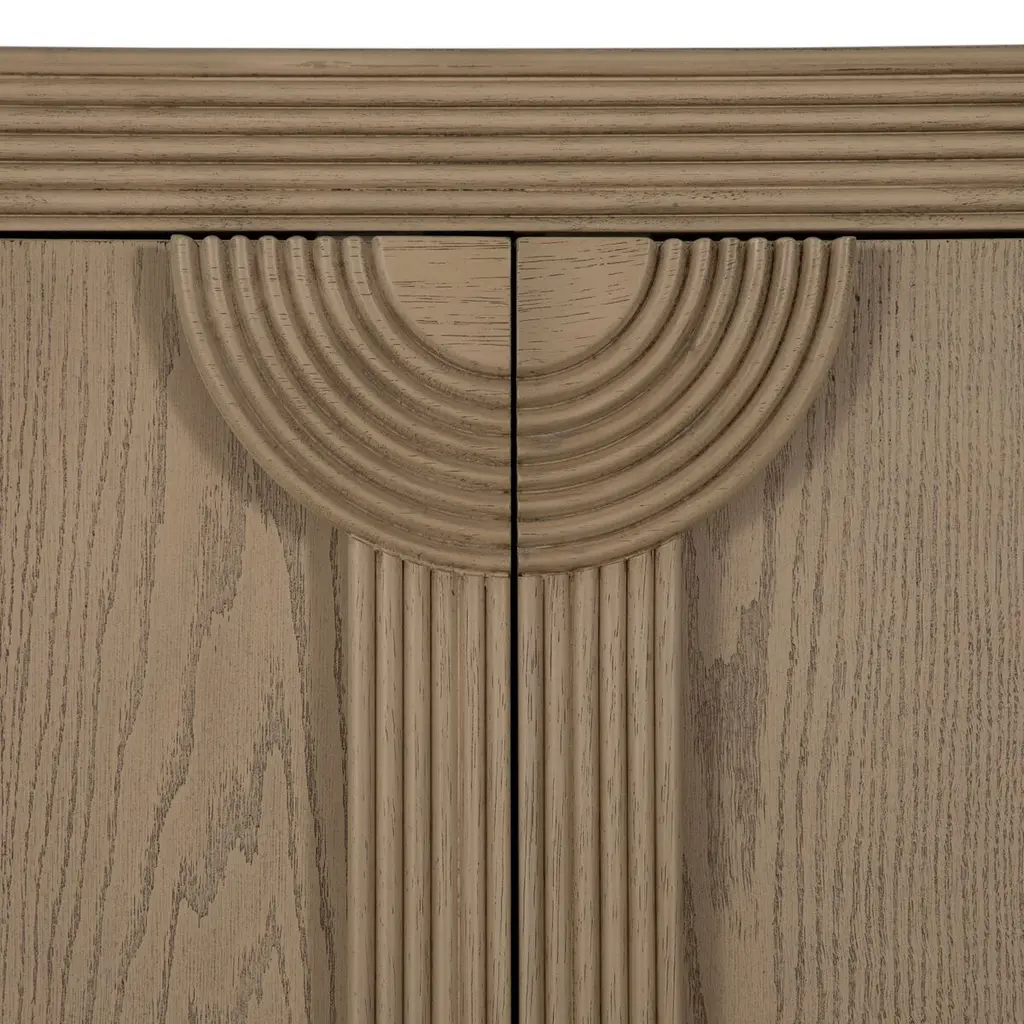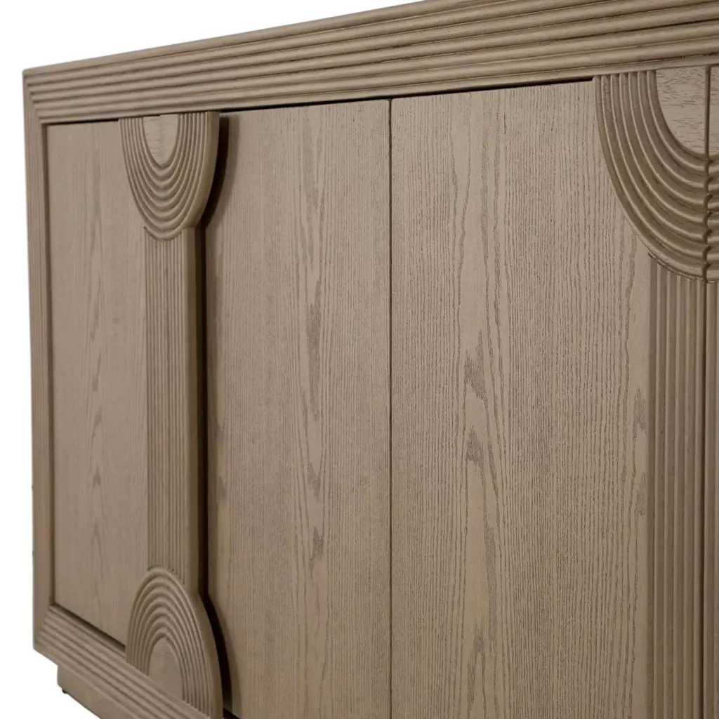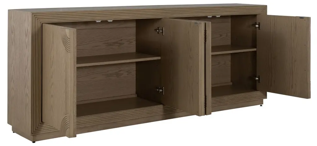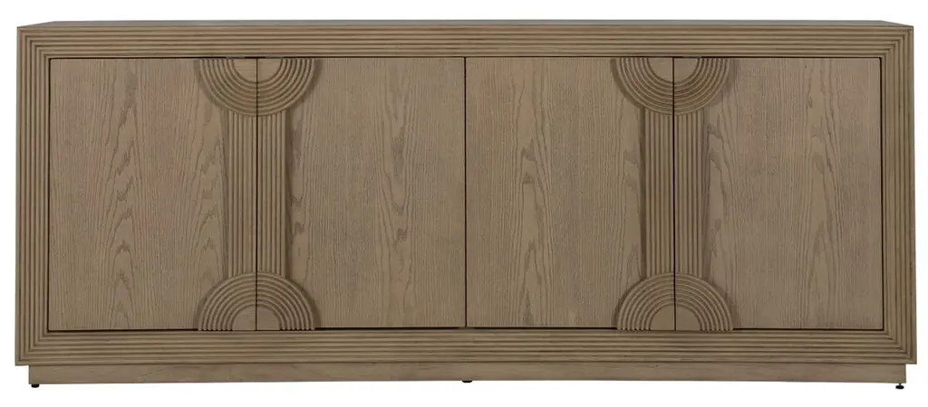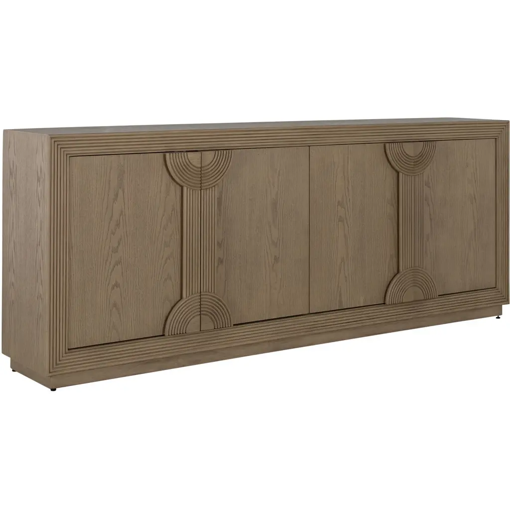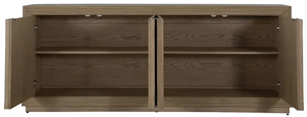 The Aero Sideboard features clean lines with a simple silhouette, adorned with distinctive geometric patterns that double as handles for access to the generous storage space inside. The sideboard is a great storage solution for living or dining spaces. This product uses natural or handmade materials, so variations in color and pattern are to be expected and celebrated.
