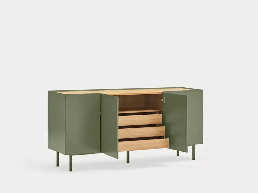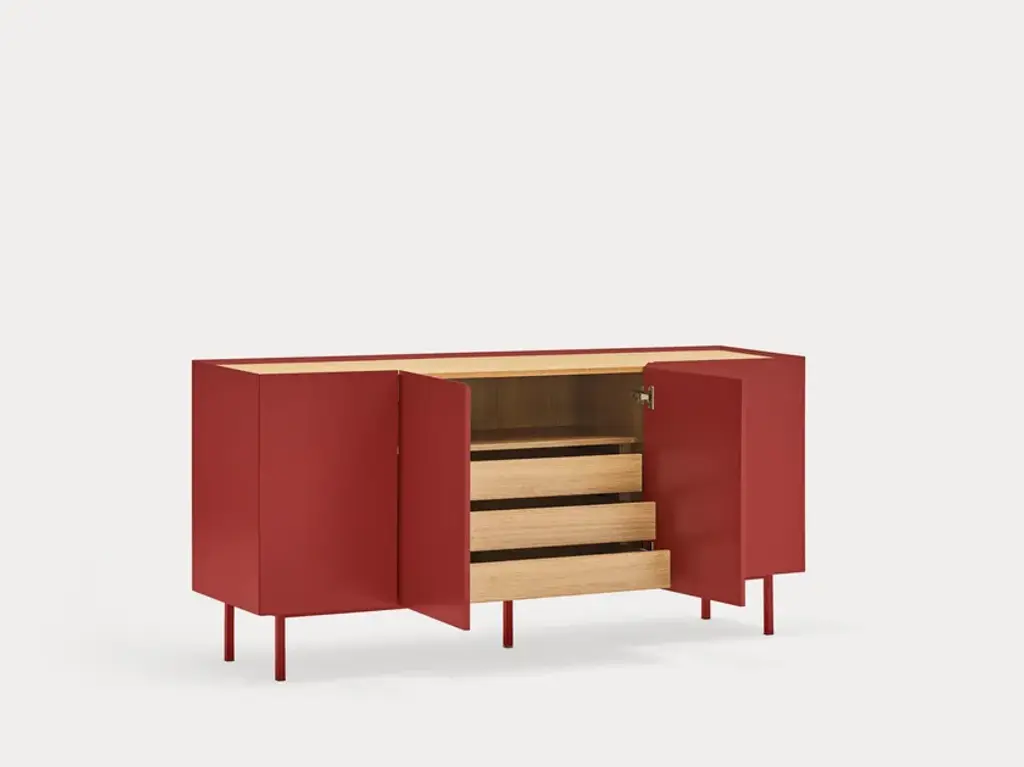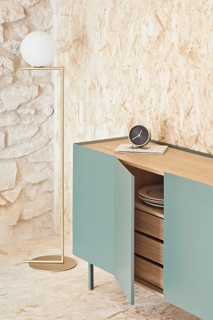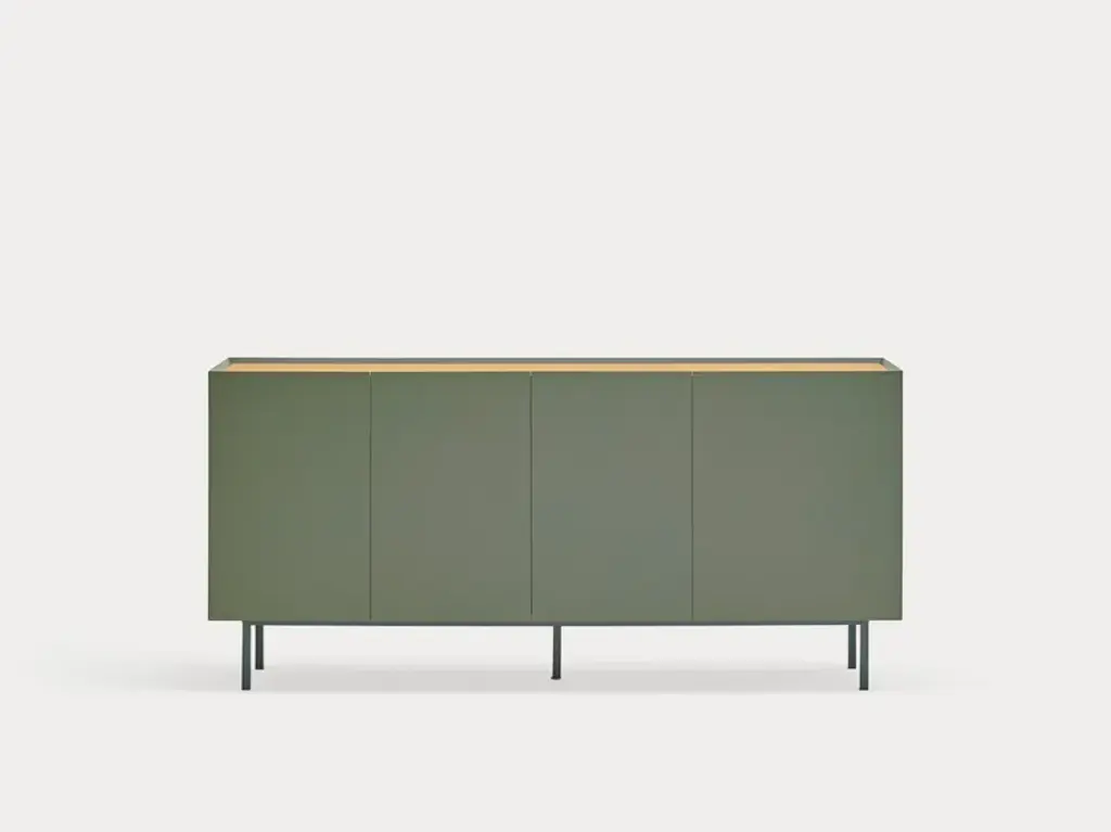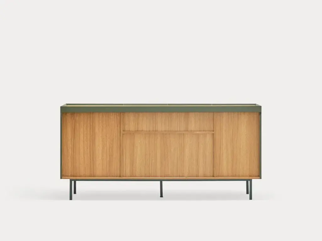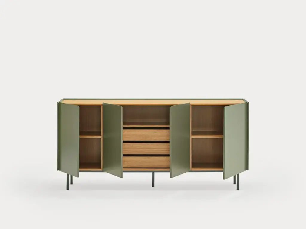 The name of this collection is defined by its great characteristics, making it special by itself. Creating the form Arista as a handle enable to transmit the essence of the collection as a particular element of the furniture.To obtain this integration, a frame was created to surround the upper perimeter of the furniture topped with an oak veneer finishing. The furniture doors meet the top at an angle of 45º which offer a total cohesion between all the furniture parts. Arista cabinet is equipped with a bottle rack in its interior and four shelves at different heights to provide a complete and versatile storage space.All the door of Arista are equipped with soft closing hinges that secure a gentle closing. The top of the furniture is oak veneer while the structure is made of lacquered MDF.The name of this collection is defined by its great characteristics, making it special by itself. Creating the form Arista as a handle enable to transmit the essence of the collection as a particular element of the furniture.