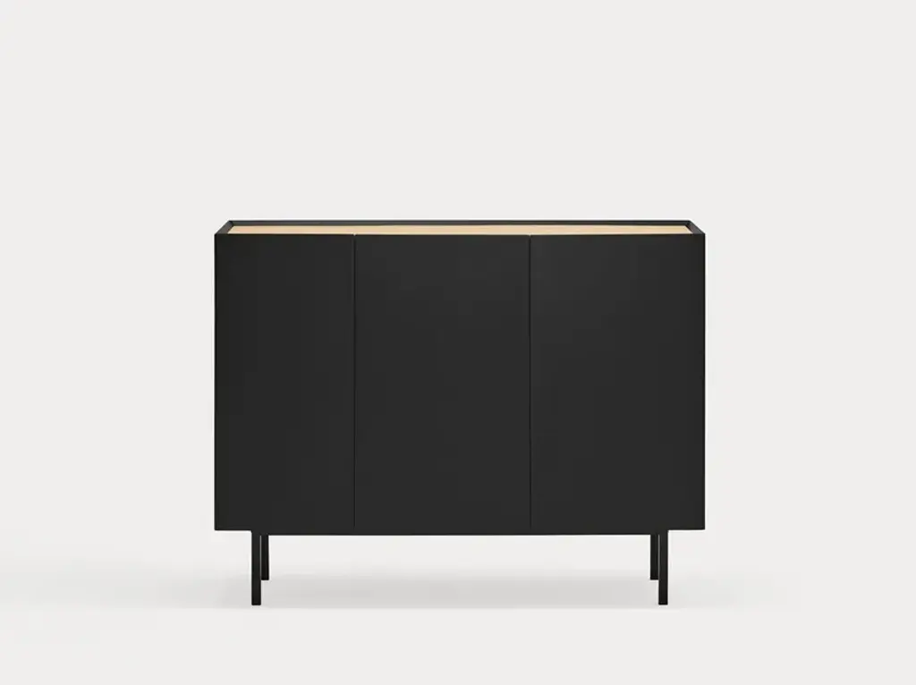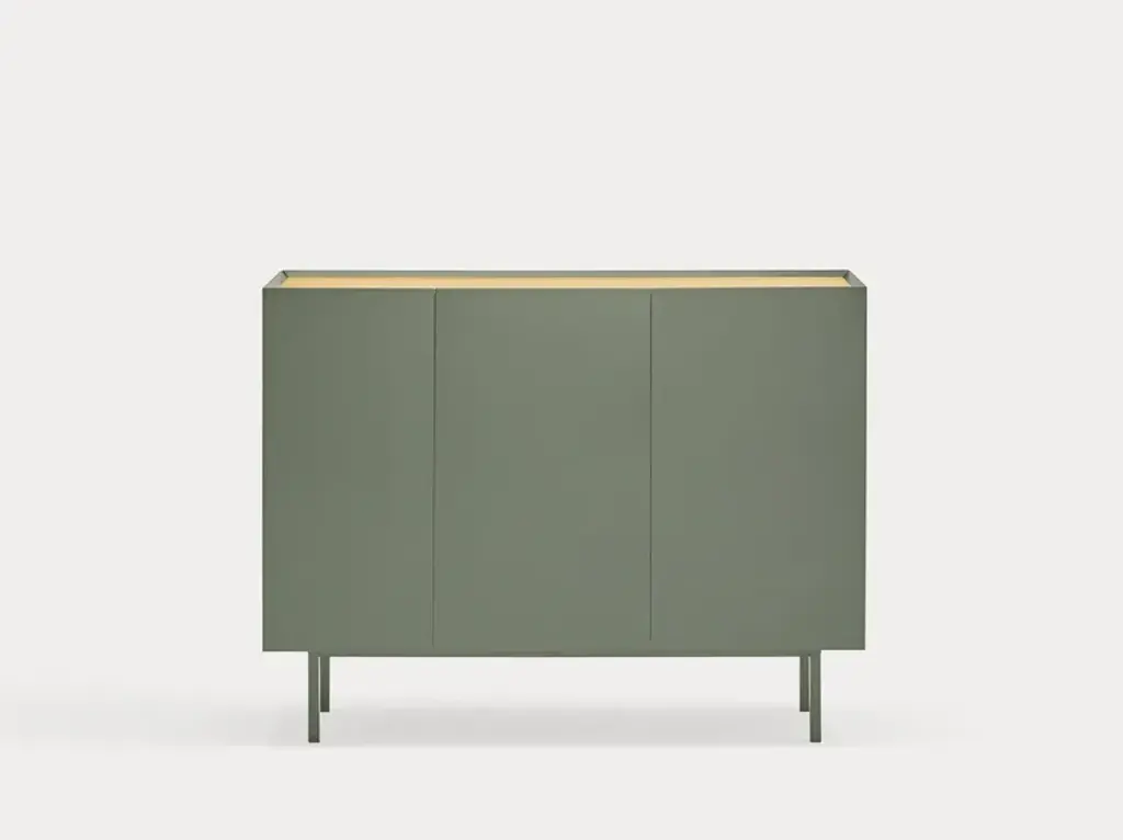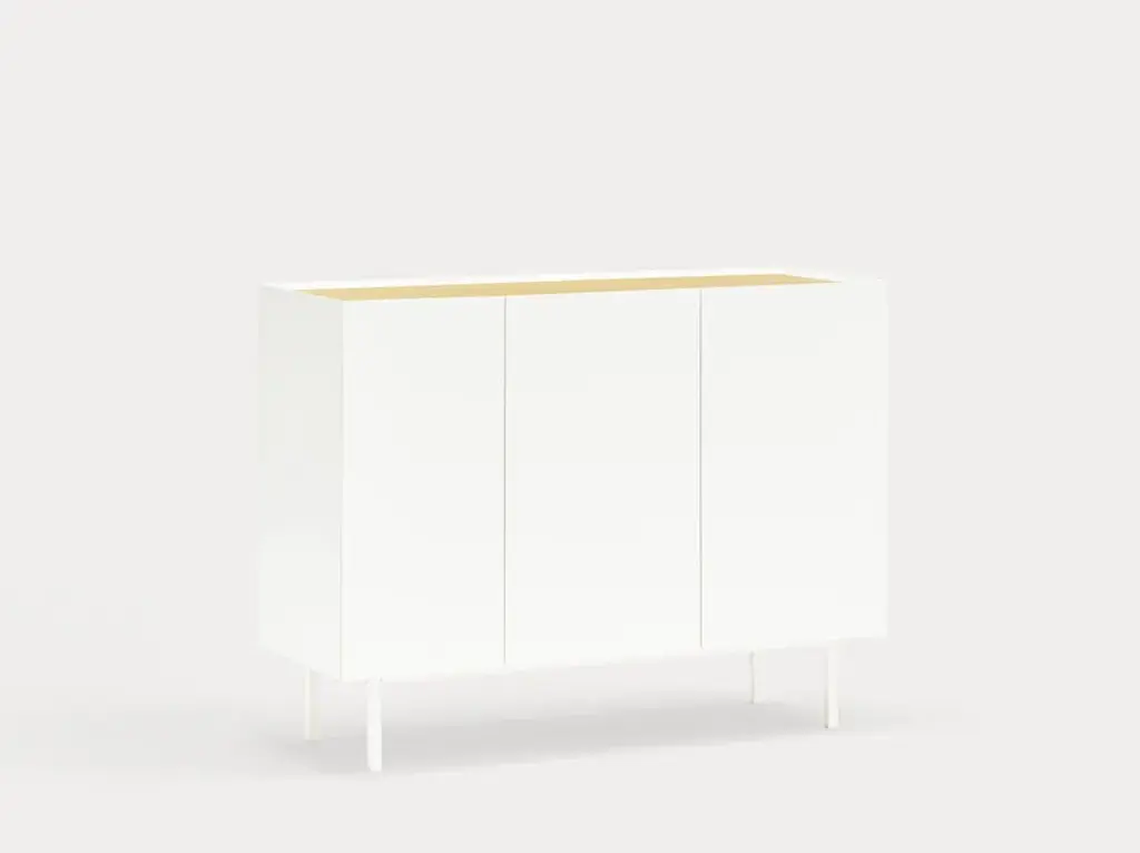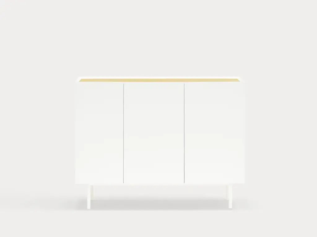 The name of this collection is defined by its great characteristics, making it special by itself. Creating the form Arista as a handle enable to transmit the essence of the collection as a particular element of the furniture.To obtain this integration, a frame was created to surround the upper perimeter of the furniture topped with an oak veneer finishing. The furniture doors meet the top at an angle of 45º which offer a total cohesion between all the furniture parts. Arista cabinet is equipped with a bottle rack in its interior and four shelves at different heights to provide a complete and versatile storage space.All the door of Arista are equipped with soft closing hinges that secure a gentle closing. The top of the furniture is oak veneer while the structure is made of lacquered MDF.The name of this collection is defined by its great characteristics, making it special by itself. Creating the form Arista as a handle enable to transmit the essence of the collection as a particular element of the furniture.