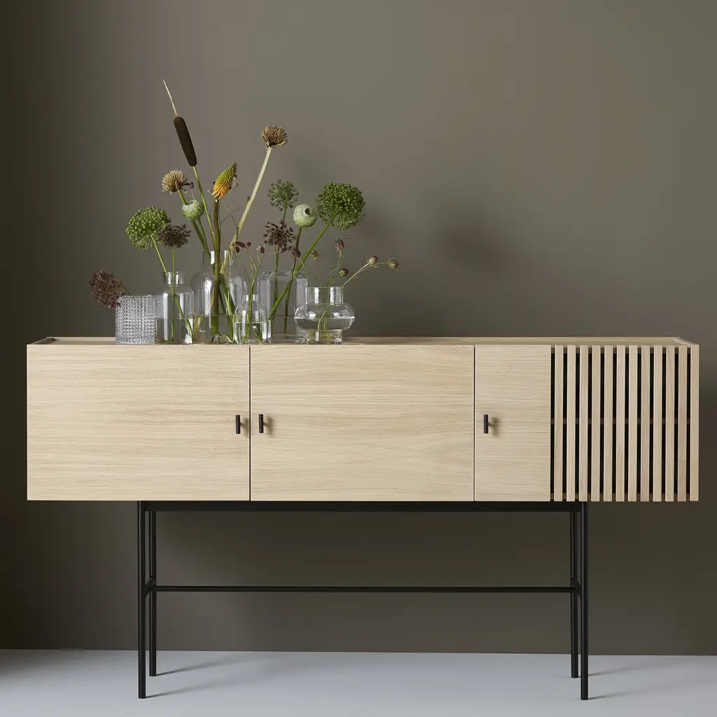 A sleek and handsome addition to any living room or dining space, the Array Low Sideboard from WOUD showcases architecturally inspired detailing in a balanced solid wood frame. Behind each door, you'll find a spacious storage compartment for stowing tableware, electronics, or toys, while the distinctive horizontal slats allow this sideboard to compliment almost any interior. Highlights