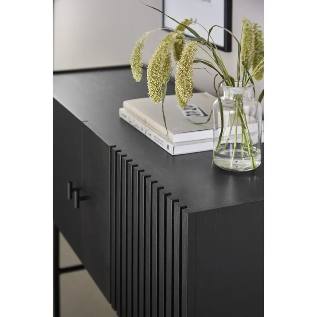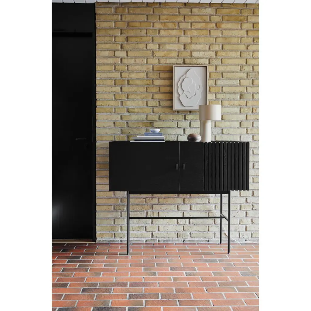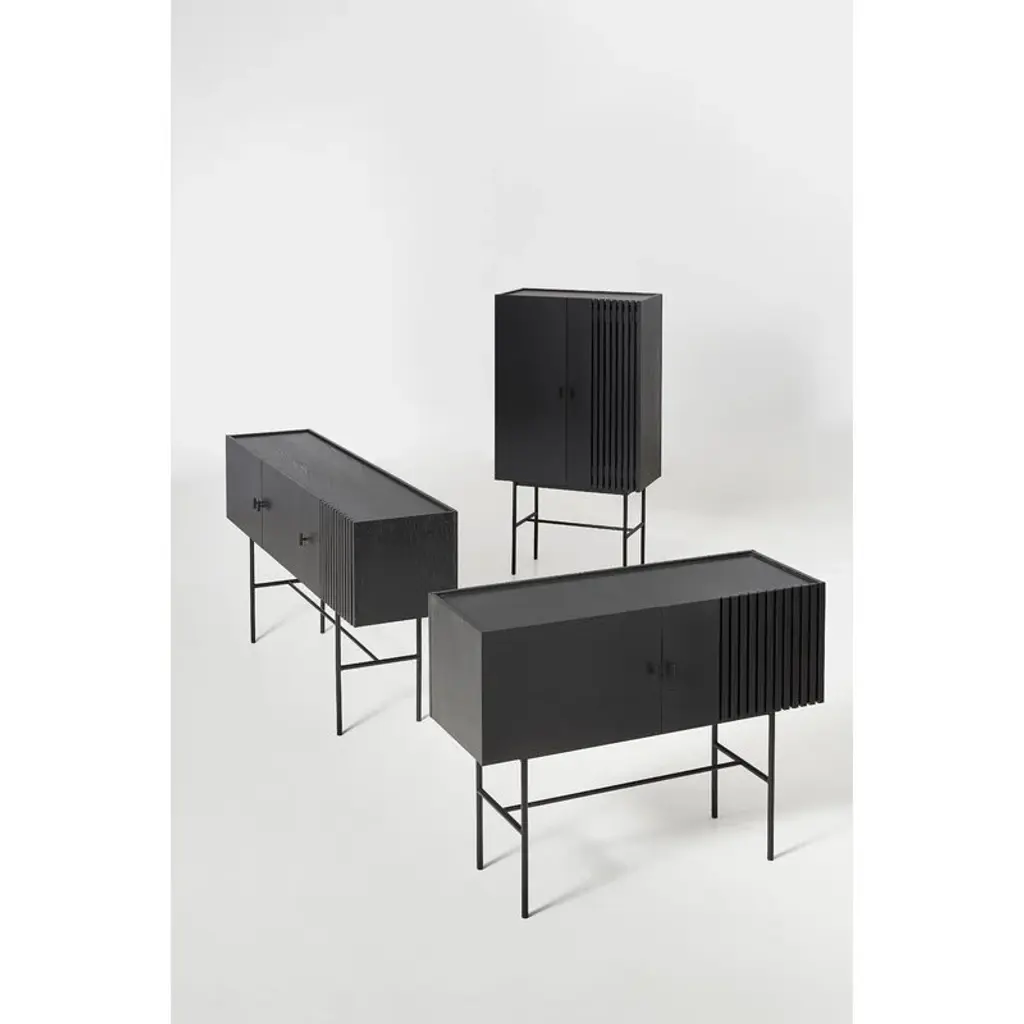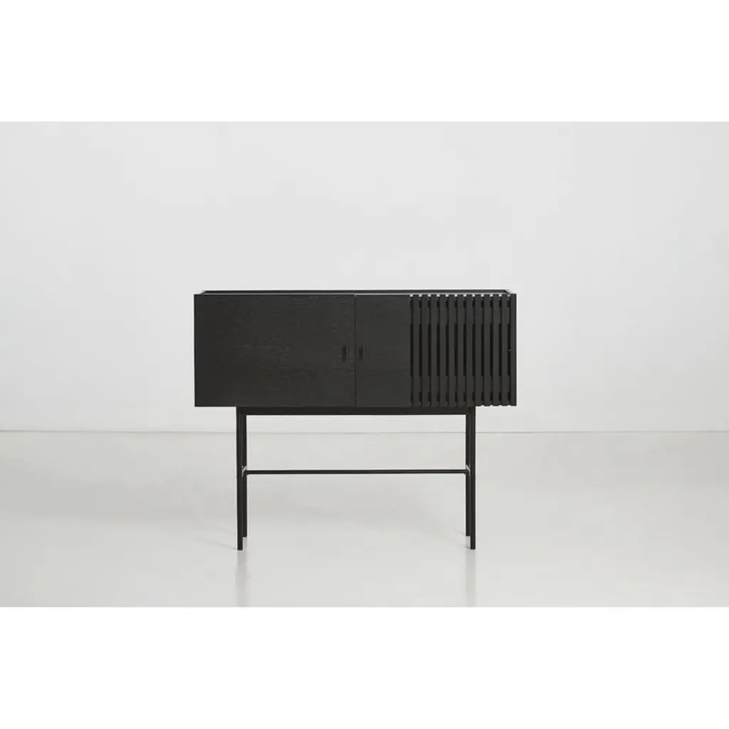 Array sideboard by Woud combines a slim metal frame with an oak-veneered cabinet. Design studio Says Who found inspiration for the vertical slates of the door from modern architecture. Behind the doors, you’ll find four convenient compartments for storing tableware, clothes, toys as well as office supplies. The play of light and shadows gives Array a refined but distinctive appearance that will complement all kinds of interiors.