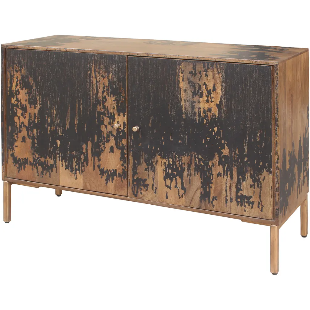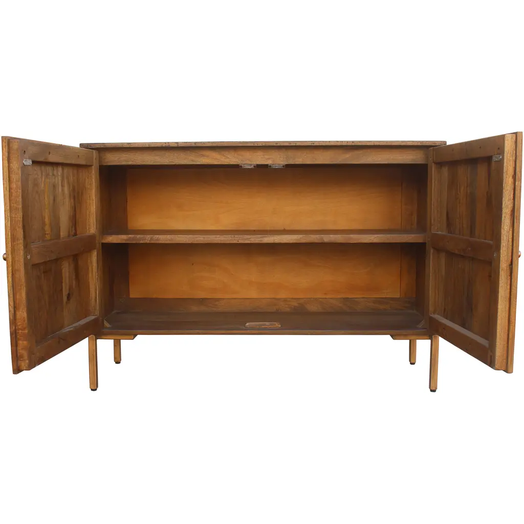 The Artists Sideboard is filled with history and charm on the outside. On the inside, it contains two spacious shelves to keep your belongings tidy. It's completed with a rough, unfinished texture for a vintage look.