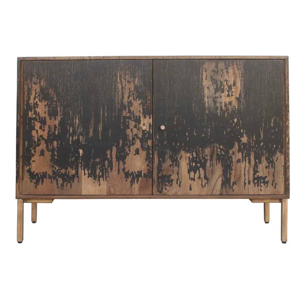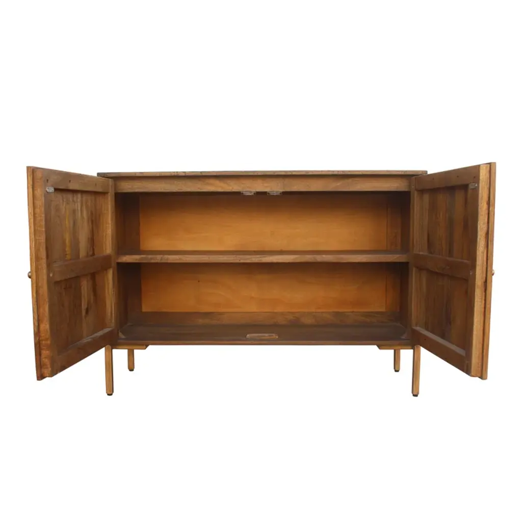 The Aurelia Sideboard is filled with history and charm on the outside. On the inside, it contains two spacious shelves to keep your belongings tidy. It's completed with a rough, unfinished texture for a vintage look.