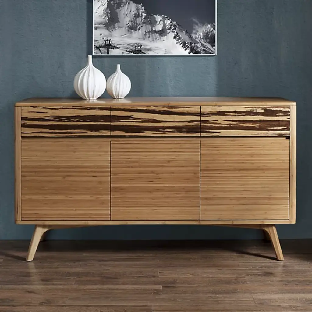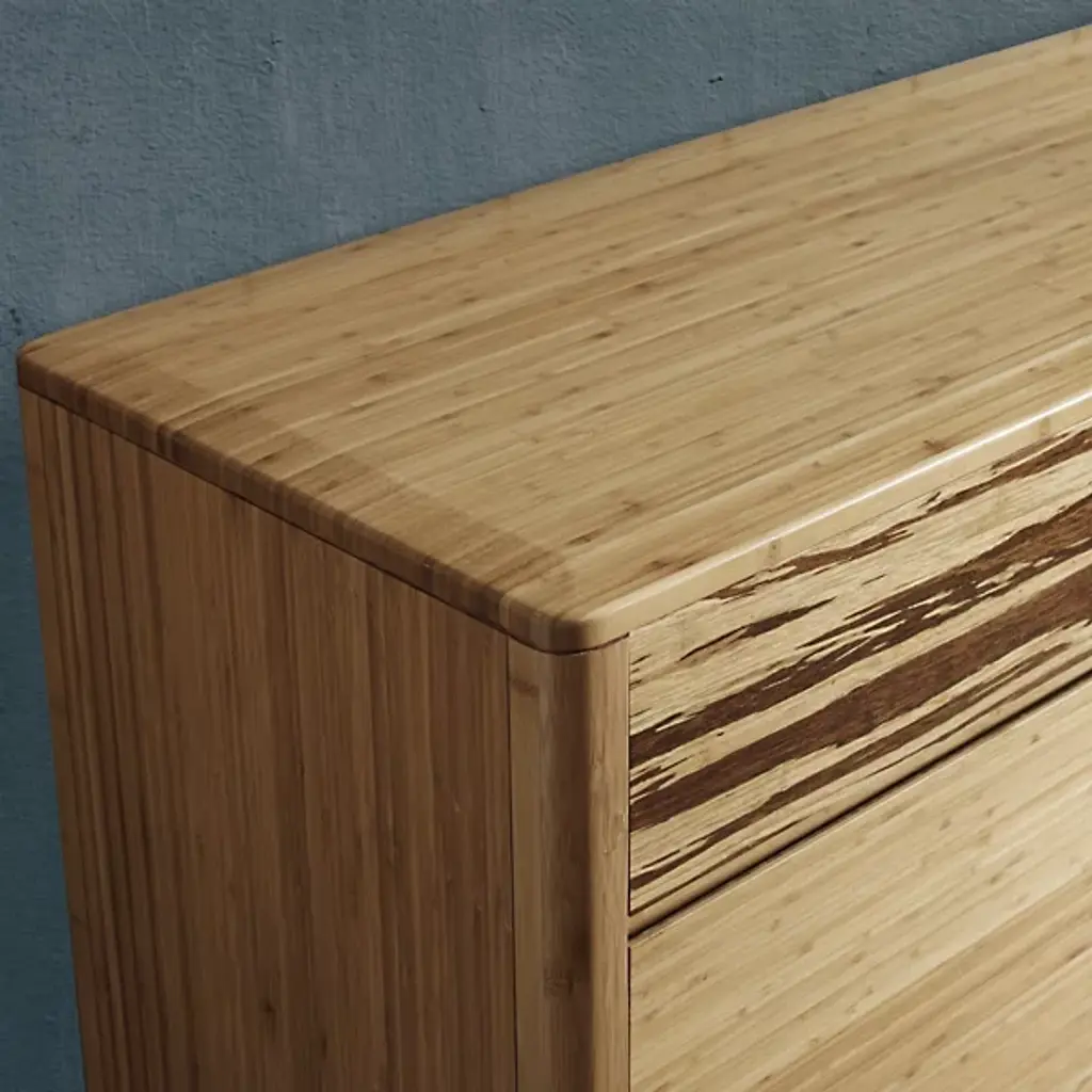 A stunning piece of furniture that features storage, steadiness and style. Constructed from the sturdy yet lightweight material Bamboo, the Greenington Azara Sideboard gives off a vibe both powerful and welcoming that matches the qualities of its material. A choice of gorgeous light or dark wood toned finishes gives customers the option to fit the piece to their taste. A tiger stripe on the top drawers injects life into the otherwise stable and somewhat unassuming fixture.