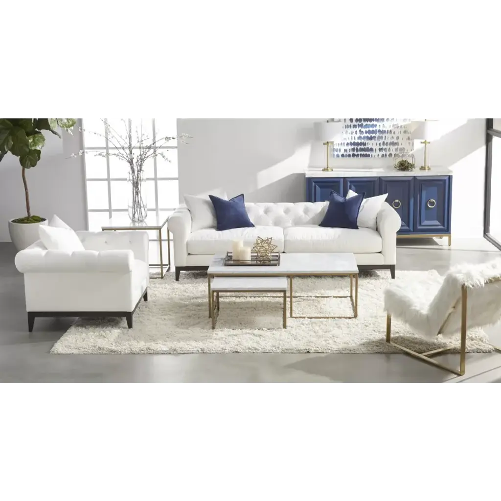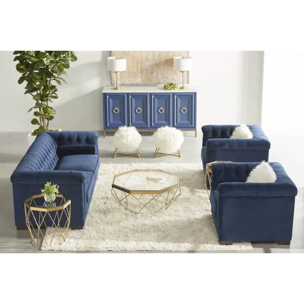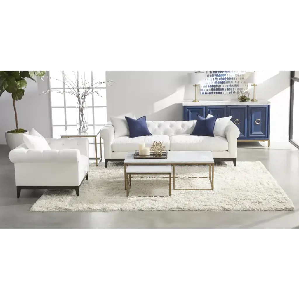 Azure Carrera Media Sideboard White Carrera Marble, Navy Blue, Brushed Gold