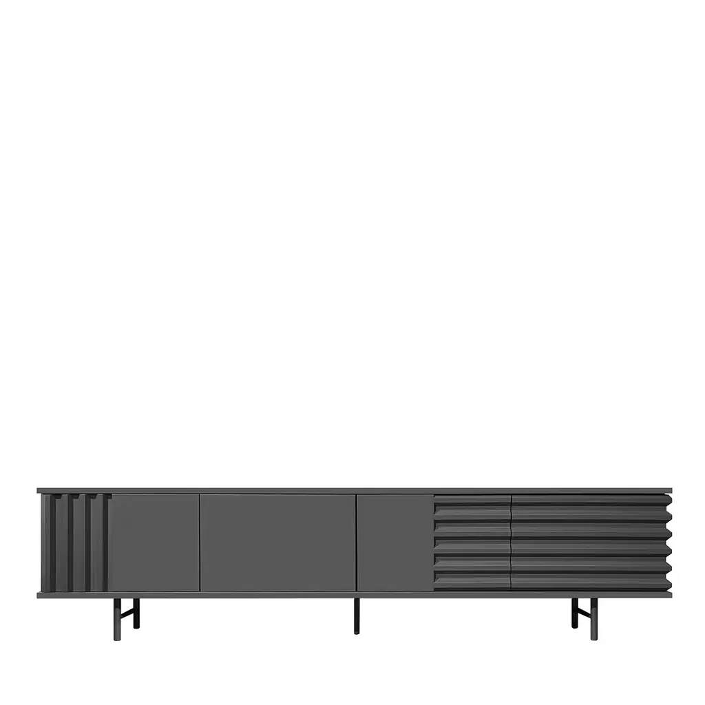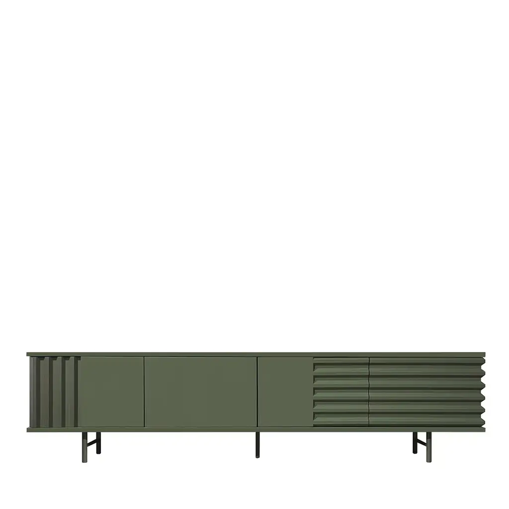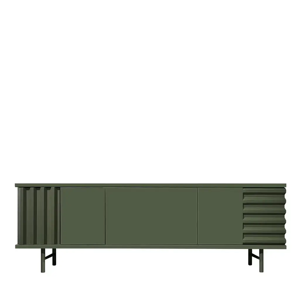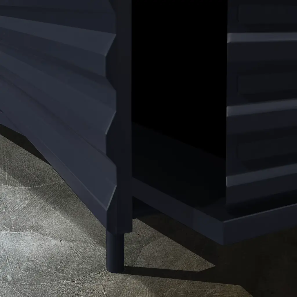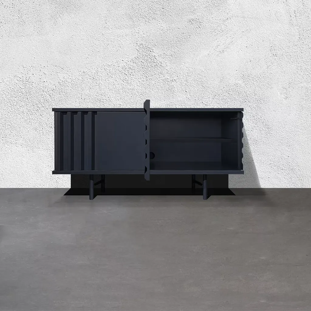 With a nod to classic shipping container aesthetics, the B-SIDE sideboard combines sleek lines and bold design to create a striking focal point. Its slatted front panels in eco-friendly MDF are treated with an industrial matte finish, capturing a modern yet timeless appeal. The stainless steel legs and push-pull doors ensure functionality, while the available customizable finishes and internal lighting options allow for personalization to suit your unique space.