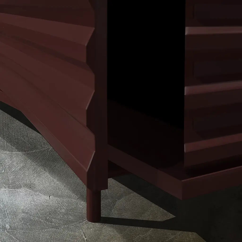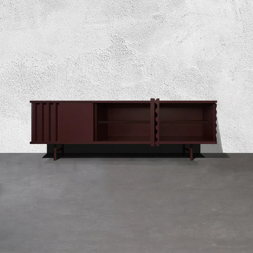 With its deep, red-wine finish, the B-SIDE sideboard exudes timeless elegance. The grooved metal inserts, offset against the minimalist structure, echo mid-century inspirations while adding a modern twist. At 191 cm in length and with a push-pull opening system, this piece balances visual interest and practicality. Choose from 12 custom finishes to personalize this eco-conscious, artisanal creation to suit your space. Please contact the Concierge for more details.