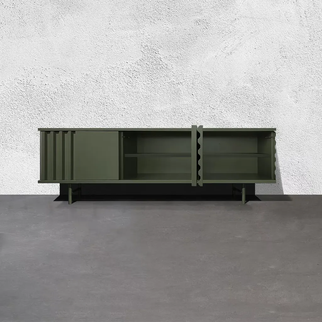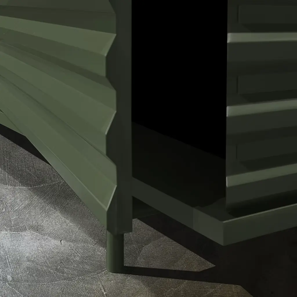 Defined by its clean lines and modern elegance, the B-SIDE sideboard embodies a refined approach to both form and function. Crafted from eco-sustainable MDF, this piece is finished with a matte lacquer that highlights its unique structure. Its slatted panels not only create a striking visual effect but also bring new interpretations of traditional design. The sideboard offers ample storage, with multiple compartments and easy access through a push-pull door system.