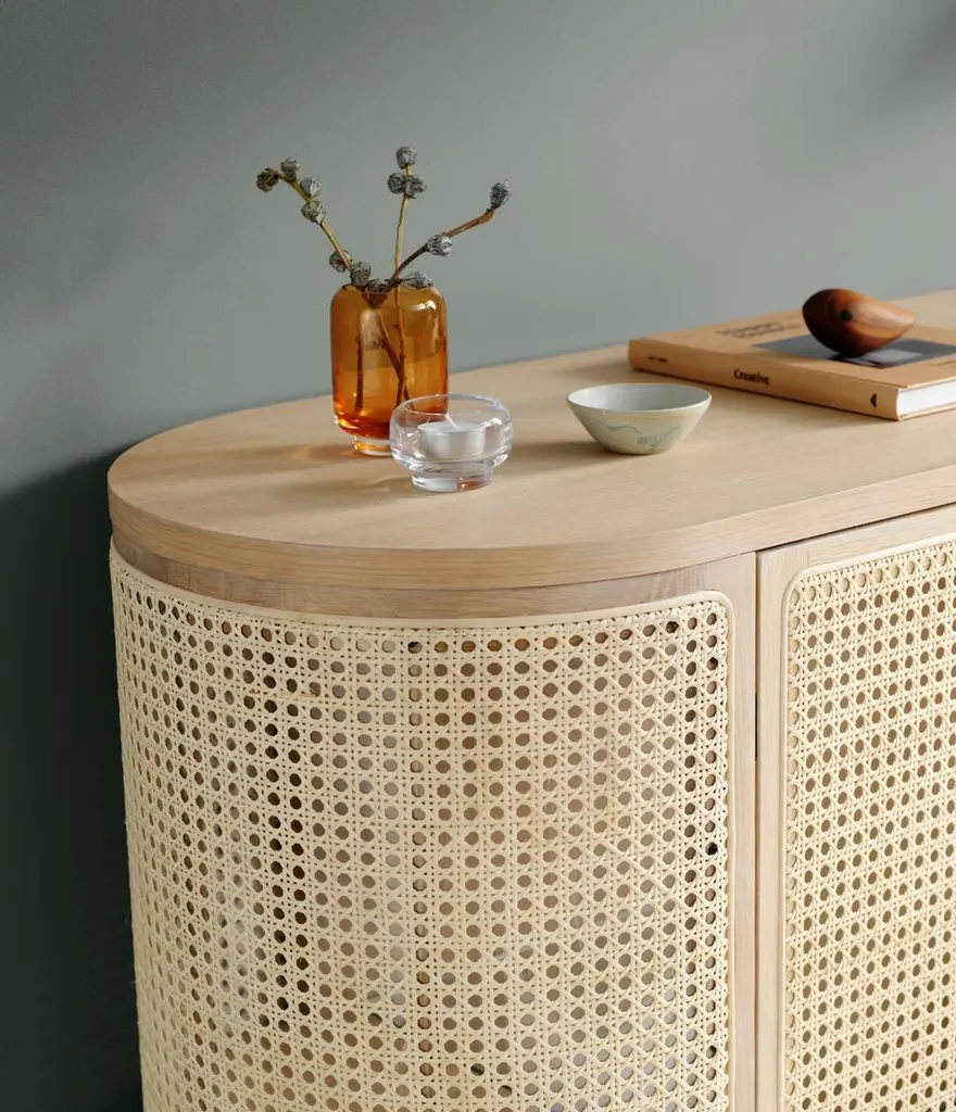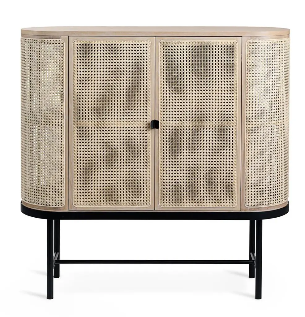 Be My Guest sideboard by Warm NordicDimensions: D130 x W43 x H130 cmMaterial: White oiled oak and french cane, Black noir powder coated steel frameWeight: 61 kgWarm Nordic is an ambitious design brand anchored in Nordic design history and with a timeless, aesthetic style that inspires you to appreciate the little things in life. The company is the result of several years’ intense work on developing a new design brand with design history, quality and personality at its core. Warm Nordic boasts a colourful and charming universe of furniture, lamps and accessories full of personality. Our designs encapsulate the Nordic spirit, which in its essence is timeless, inclusive and warm.