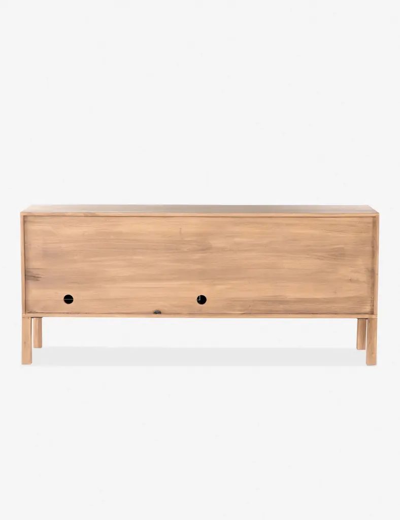 Pared-down lines and rough-hewn texture define this wood sideboard, bringing a simple, sophisticated look to your space. Crafted from solid poplar, it's a fresh update to Shaker-inspired style. With three drawers and roomy cabinets finished with iron and leather pulls, this buffet sideboard can hold all of your tableware essentials.