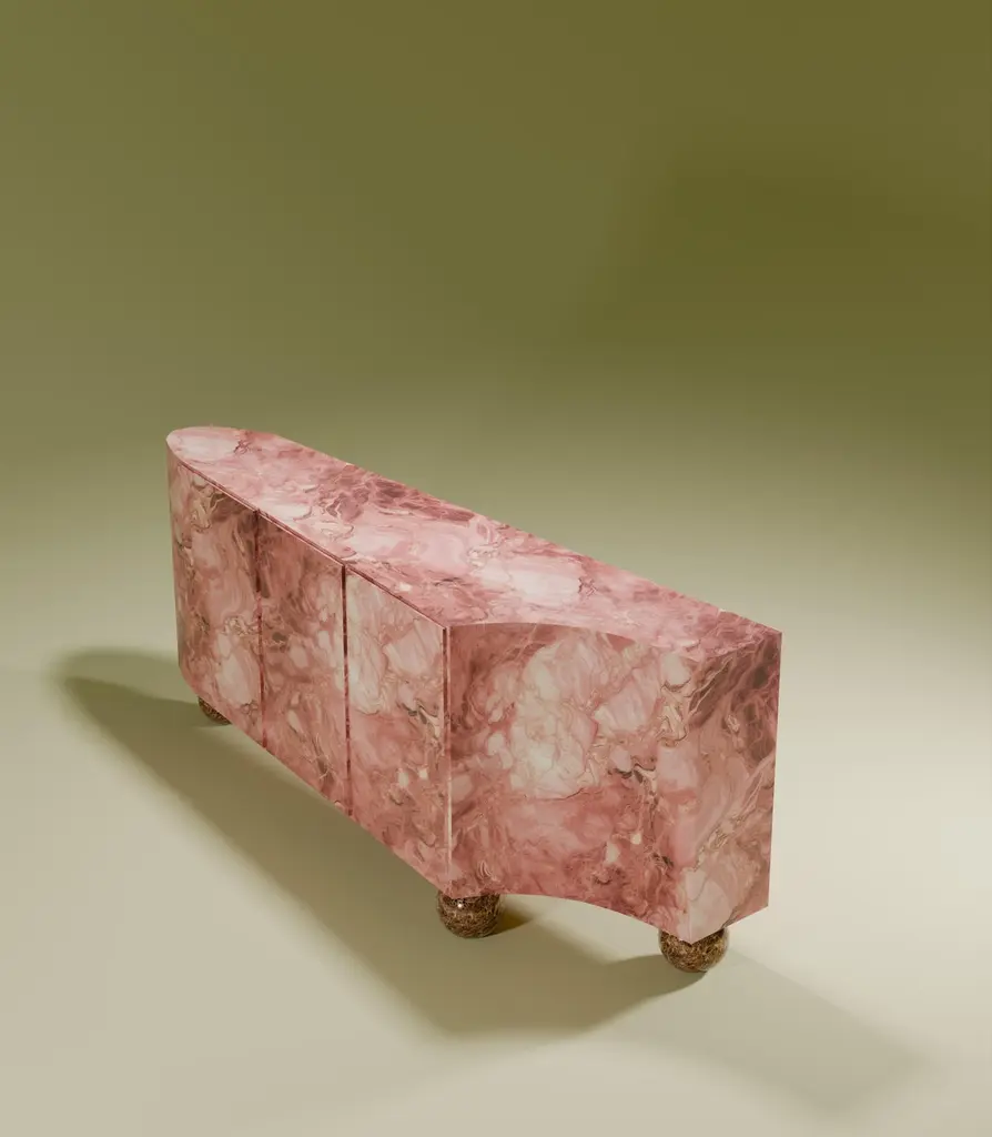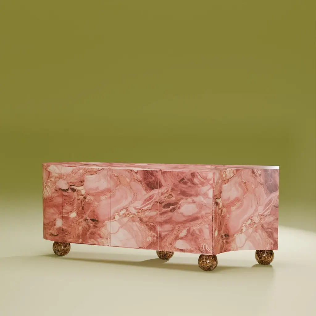 NEW Sideboard Bella, inspired on the movie " Poor Things " by Yorgos Lanthimos, this piece mixes styles and is visually striking like the movie. The sideboard is in lacquer and the base in Emperador Dark marble.