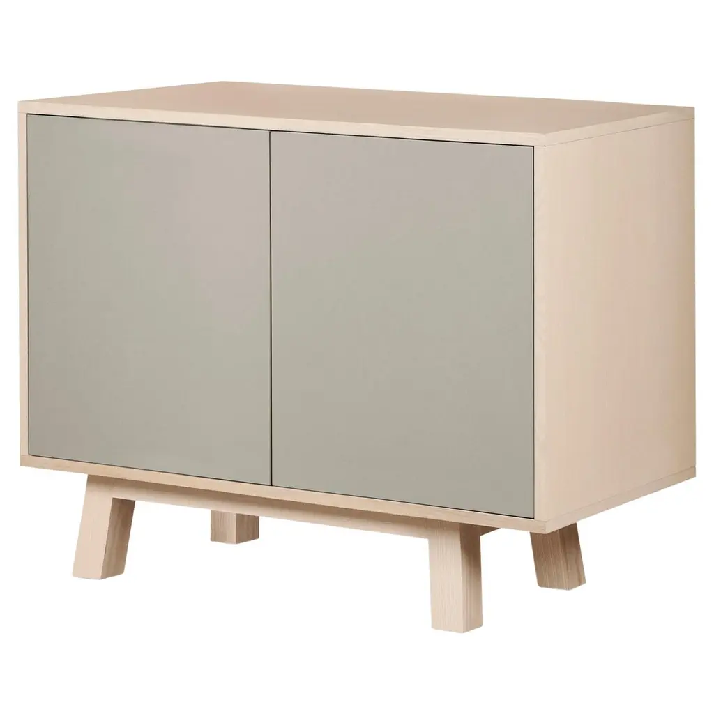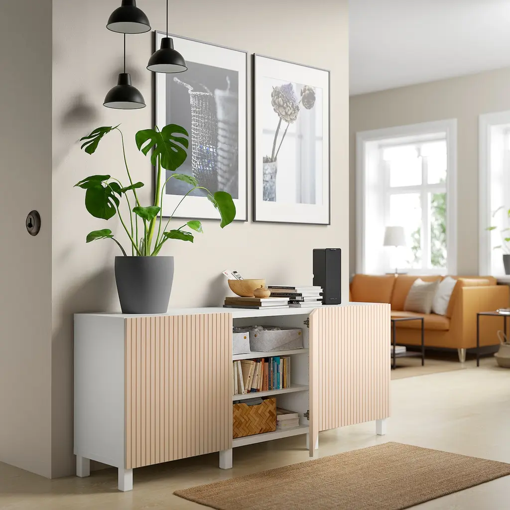 BESTÅ Storage combination with doors - white/Björköviken/Stubbarp birch veneer 70 7/8x16 1/2x29 1/8 ". BJÖRKÖVIKEN front is made of birch veneer, giving each door a sense of quality with a natural expression. Adjustable hinges allow you to adjust the door horizontally and vertically.