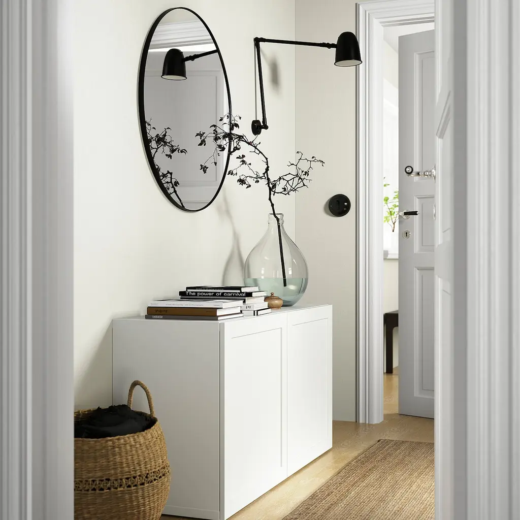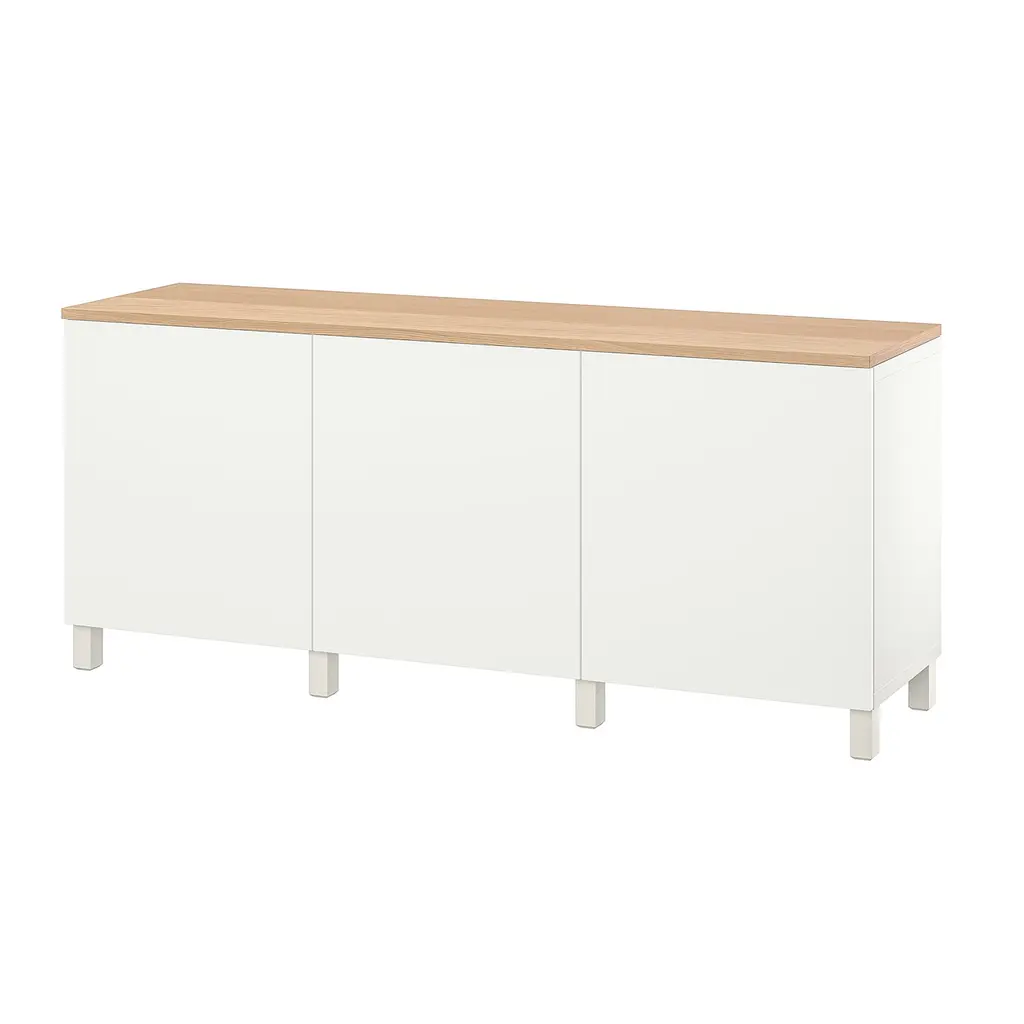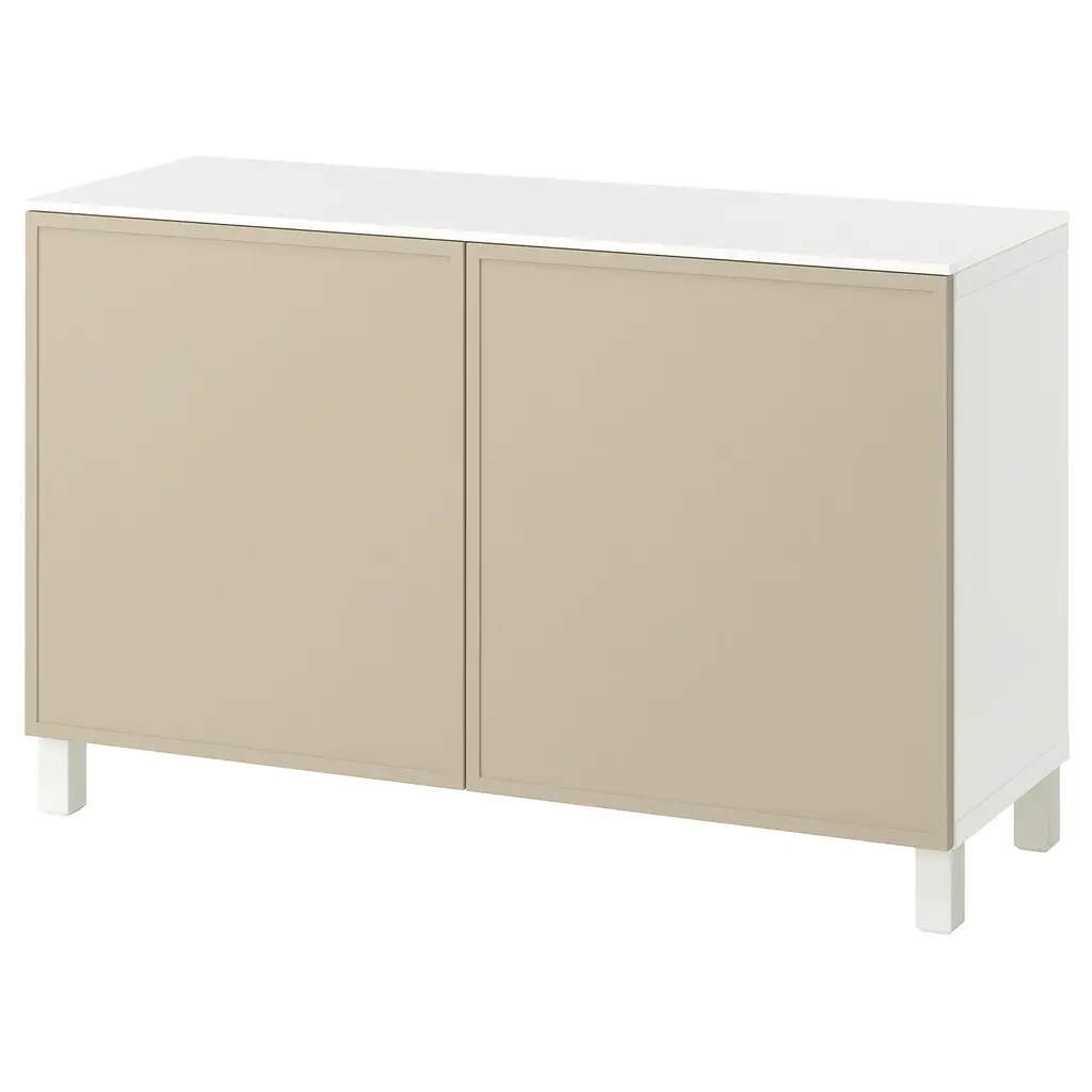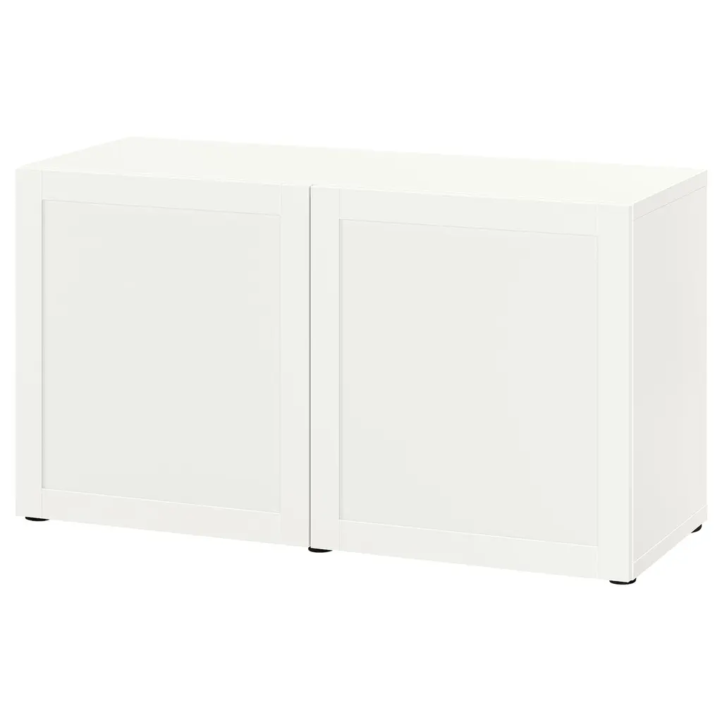BESTÅ Storage combination with doors - white/Hanviken white 47 1/4x16 1/2x25 5/8 ". Adjustable hinges allow you to adjust the door horizontally and vertically. Adjustable shelves, so you can customize your storage as needed. Steady on uneven floors, thanks to the adjustable feet.