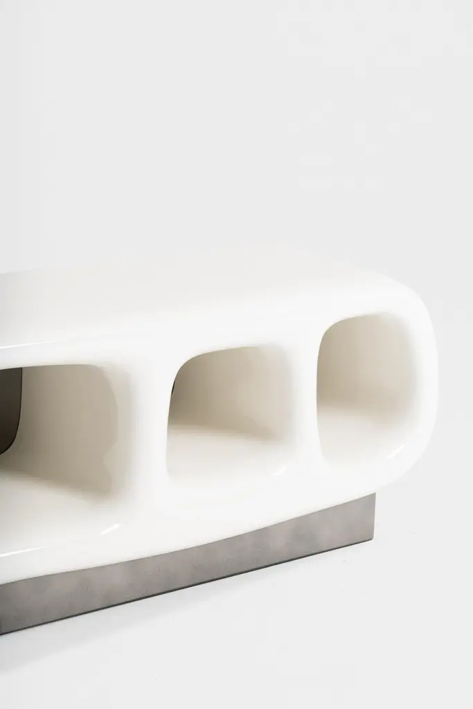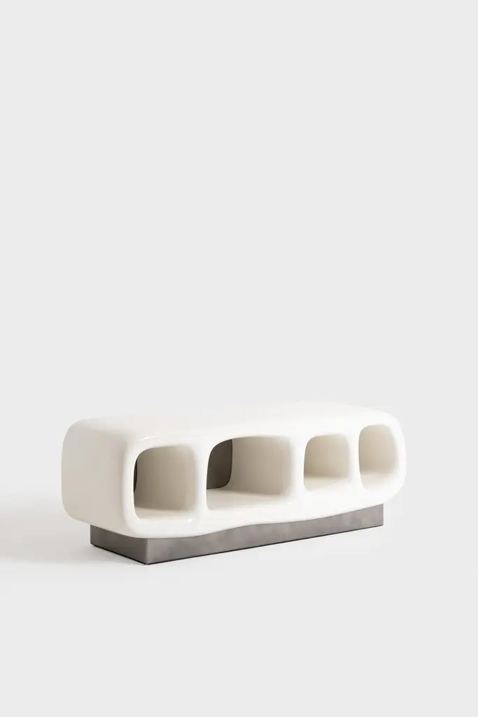 Betty Rubble merge contemporary substances like polyurethane and metalwith high-gloss ceramic wainscoting, elevating an archaic design to a sophisticated and refined piece of art.The sideboard is part of Paleolite, an experimental collection of accessories that arise from Cibic’s research on Etruscan and pre-Columbian architectural languages, and from his obsession in collecting photos of stones and minerals to create collages. The objects are made with experimental materials, such as metal limes or super-light nebulized conglomerates.Betty Rubble was part of Be Yourself to Shine. The exhibition, set in an 18th-century palace in the heart of Turin, merges historic architecture with contemporary design, creating a unique sensory journey. It showcases one-of-a-kind pieces and installations resulting from collaborations with young Italian artists and designers, exploring the relationship between art, materials, and emotion. Each work is conceived to integrate with the spaces, generating a dialogue between the past and the present. The exhibition also offers a reflection on the boundary between art and design, with pieces that transform everyday objects into artistic and sensory experiences.Open edition. Standard production time is approximately 8–9 weeks once current stock is sold out.One piece available for immediate delivery. For projects involving multiple units, production time may vary.
