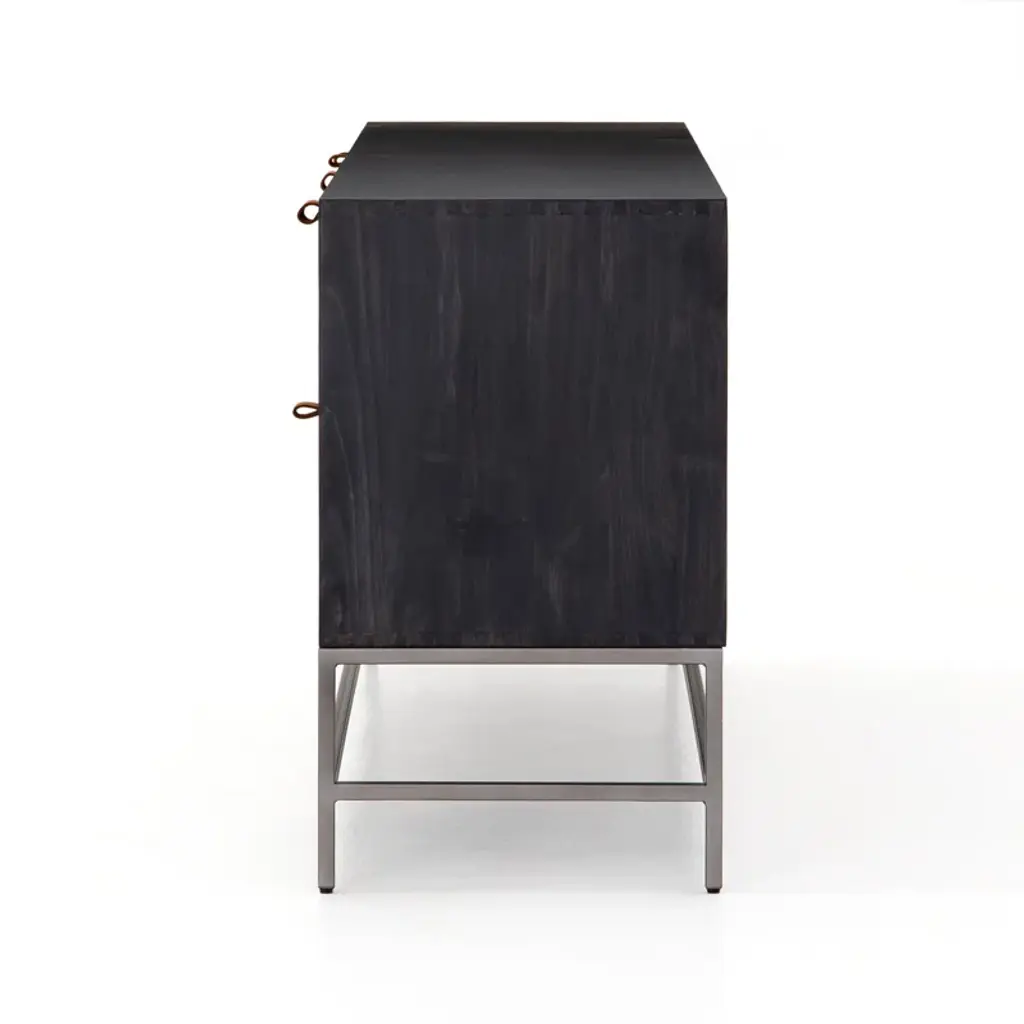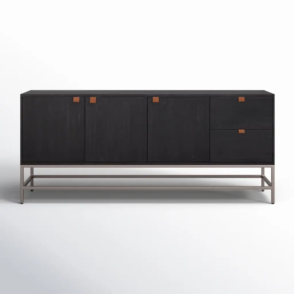 Meet the Quadrum buffet, a simple beauty that becomes a showstopping piece in any home. A streamlined buffet with an elevated bevel case edge paired with unique grain patterning. Open the solid construction doors to reveal a hidden storage drawer and shelving.