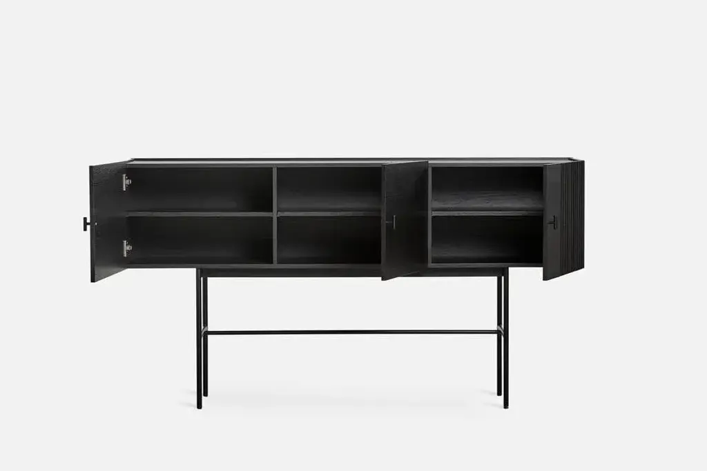 Black oak array sideboard 180 by says who. Materials: oak, metal. Dimensions: d 44 x w 180 x h 97 cm also available in different colours and materials. The founders, mia and torben koed, decided to put their 30 years of experience into a new project. It was time for a change and a new challenge. The challenge was to build an ambitious design brand from the ground up with high-quality materials and great attention to the little details. With a drive to create new originals, the woud collection is founded upon the idea to look ahead instead of looking back and share the love for honest design. Therefore, we are eager to discover and develop new ideas whether it being in form, function or choice of material.