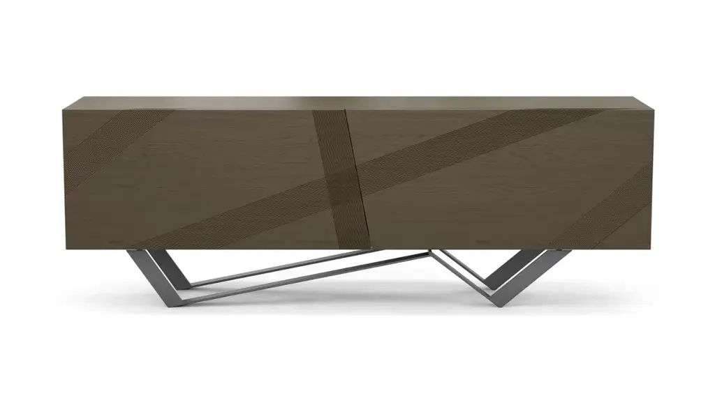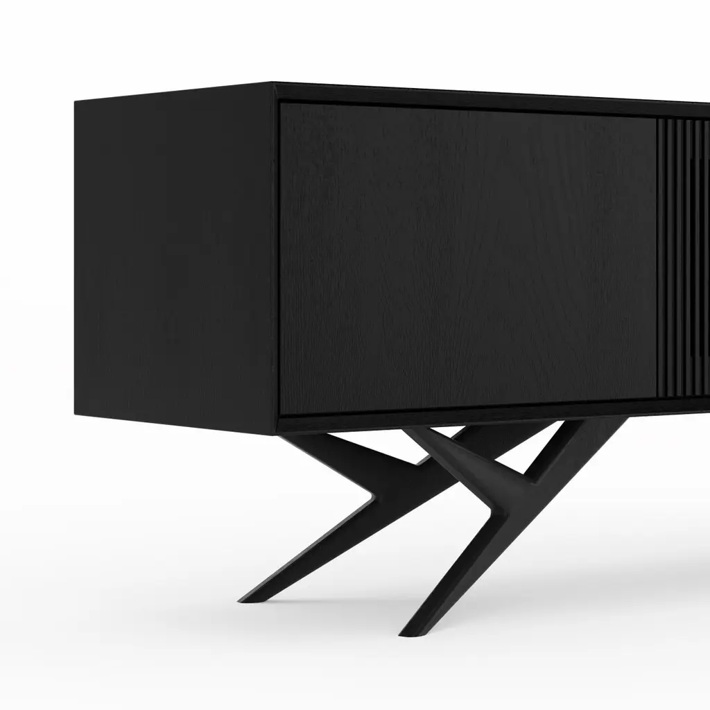 Black Oak Sideboard With Slatted Door And Organic Base – Mid-Century Modern